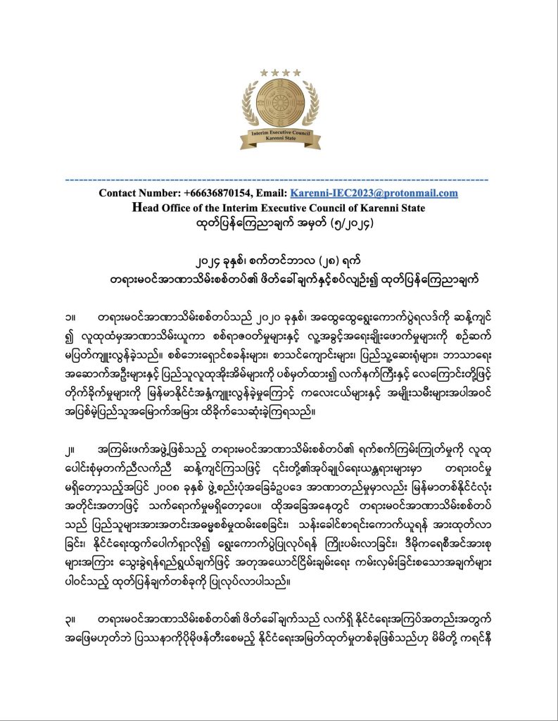 တရားမဝင် အာဏာသိမ်းစစ်တပ်ရဲ့ ဖိတ်ခေါ်မှုကို ကရင်နီပြည်က တော်လှန်ရေးအင်အားစုတွေ အနေနဲ့ လက်ခံသွားမှာ မဟုတ်ဘဲ စစ်မှန်တဲ့ ဖက်ဒရယ် စနစ်ဖြစ်ပေါ်ရေးအတွက်သာ ဆက်လက်ကြိုးပမ်းသွားမှာ ဖြစ်ကြောင်း ဒီနေ့ စက်တင်ဘာလ ၂၈ ရက် မနက်ပိုင်းမှာ ထုတ်ပြန်ပါတယ်။
