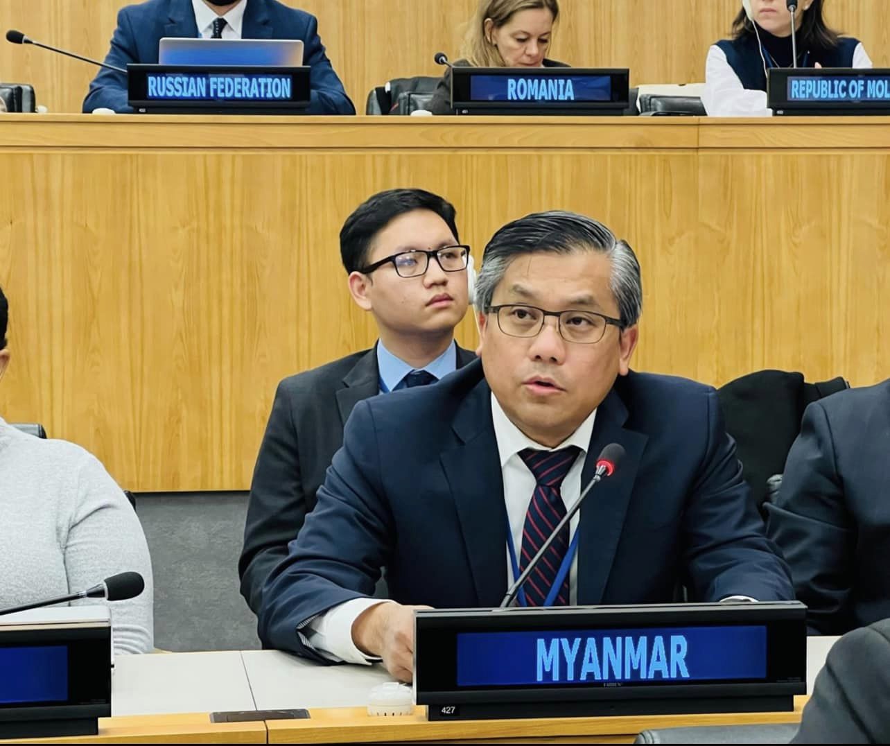 စစ်ကောင်စီရဲ့ အတုအယောင် ရွေးကောက်ပွဲက ပြည်သူတွေကိုပိုမိုဒုက္ခရောက်အောင် တွန်းပို့နေခြင်းသာဖြစ်လို့ မြန်မာပြည်သူတွေကလည်း ရွေးကောက်ပွဲကိုလက်ခံမှာ မဟုတ်ဘူးလို့ သံအမတ်ကြီးက (၇၉) ကြိမ်မြောက် ကုလသမဂ္ဂအထွေထွေညီလာခံရဲ့ ဒုတိယကော်မတီ မိန့်ခွန်းမှာ ထည့်သွင်းပြောကြားလိုက်တာပါ။