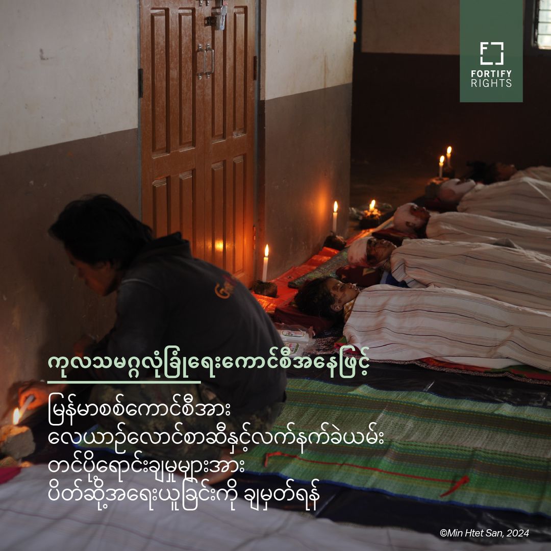 အရှေ့တောင်အာရှအခြေစိုက် လူ့အခွင့်အရေးအဖွဲ့တစ်ခုဖြစ်တဲ့ Fortify Right ဟာ စစ်ကောင်စီရဲ့ လူ့အခွင့်အရေးချိုးဖောက်မှုတွေ၊ ဒေသတွင်း စစ်ရာဇဝတ်မှုကျူးလွန်နေခြင်းတွေကို နိုင်ငံတကာ သိရှိအောင် ထုတ်ဖော်ပြောဆိုနေတဲ့ အဖွဲ့အစည်းတစ်ရပ်လည်း ဖြစ်ပါတယ်။