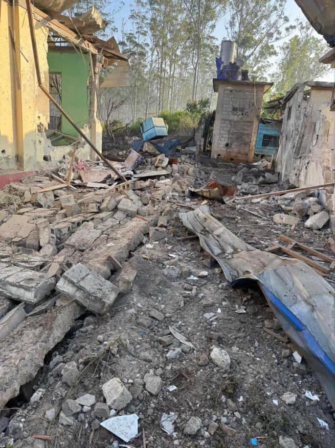 ဗုံးကြဲချတိုက်ခိုက်မှုကြောင့် ပြည်သူတစ်ယောက် ထိခိုက်ဒဏ်ရာရရှိခဲ့ပြီး အနီးနားက ကျွဲ(၁)ကောင်နဲ့ ဌာနဆိုင်ရာအဆောက်အဦးတချို့ ထိခိုက်ပျက်စီးခဲ့ပါတယ်။