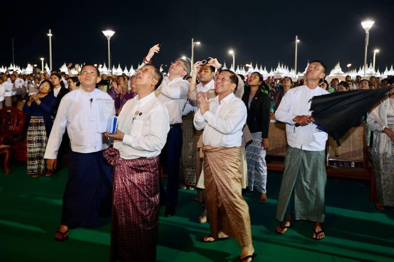 စစ်ခေါင်းဆောင် မင်းအောင်လှိုင်နဲ့ မြန်မာနိုင်ငံကိုရောက်နေတဲ့ ရုရှားနိုင်ငံ ဘူရားတီးရားပြည်နယ် အစိုးရဥက္ကဋ္ဌ Mr. Alexey Sambuevich Tsydenov တို့ တက်ရောက်တဲ့ နိုဝင်ဘာ ၁၅ ရက် ညက နေပြည်တော်မီးပုံးပျံပွဲမှာ “လူ့အသက်ထက်အရေးကြီးတာ ဘာမှမရှိ” စာတမ်းချိတ်ဆွဲပြီး မီးပုံးပျံလွှတ်တင်ခဲ့တယ်လို့ စစ်ကောင်စီက ထုတ်ပြန်ခဲ့တာပါ။