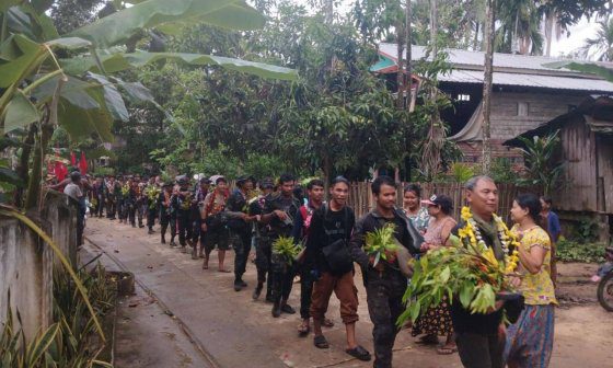 ပျူစောထီးအဖွဲ့ကို တိုက်ခိုက်ပြီး အောင်ပွဲနှင့် ပြန်လာသည့် တနင်္သာရီ ပကဖ တပ်ဖွဲ့ဝင်များကို ပြည်သူလူထု ဂုဏ်ပြုကြိုဆို