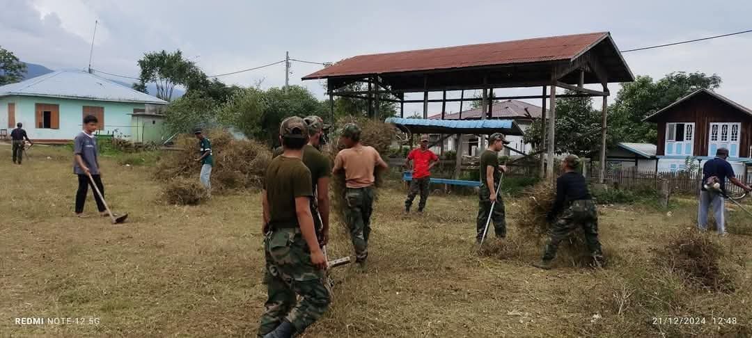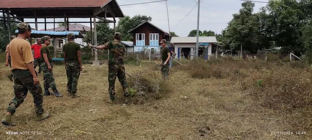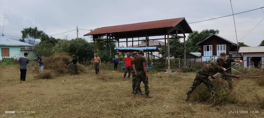 ရှမ်းပြည်နယ်မြောက်ပိုင်း၊ မိုးမိတ်ခရိုင်၊ မိုးမိတ်မြို့နယ်၊ ကျေးရွာတစ်ရွာရဲ့ ဘောလုံးကွင်းကို မိုးမိတ်ခရိုင် ပြည်သူ့ကာကွယ်ရေးအဖွဲ့ ( ပ.က.ဖ ) ရဲ့ ရဲဘော်တွေက ပြည်သူ့အကျိုးပြုလုပ်ငန်းအဖြစ် ကျေးလက်နေ လူငယ်တွေ ဘောလုံးကစားနိုင်အောင် ပြုပြင်ထိန်းသိမ်းတာတွေ လုပ်ဆောင်ခဲ့တယ်လို့ မိုးမိတ်ခရိုင် ပ.က.ဖ က ထုတ်ပြန်ထားပါတယ်။