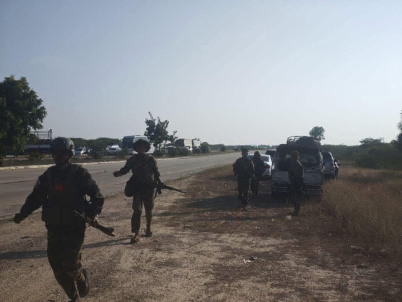 PDF တပ်ဖွဲ့တွေ ရောက်ရှိလာတယ်ဆိုတဲ့ သတင်းကြောင့် စစ်ကောင်စီတပ်တွေက ရန်ကုန်-မန္တလေး အမြန်လမ်း မိုင်တိုင်အမှတ် ၃၁၈ ဝန်းကျင်မှာ လာရောက်ပြီး အထိုင်ချတပ်စွဲထားတယ်လို့လည်း သိရပါတယ်။