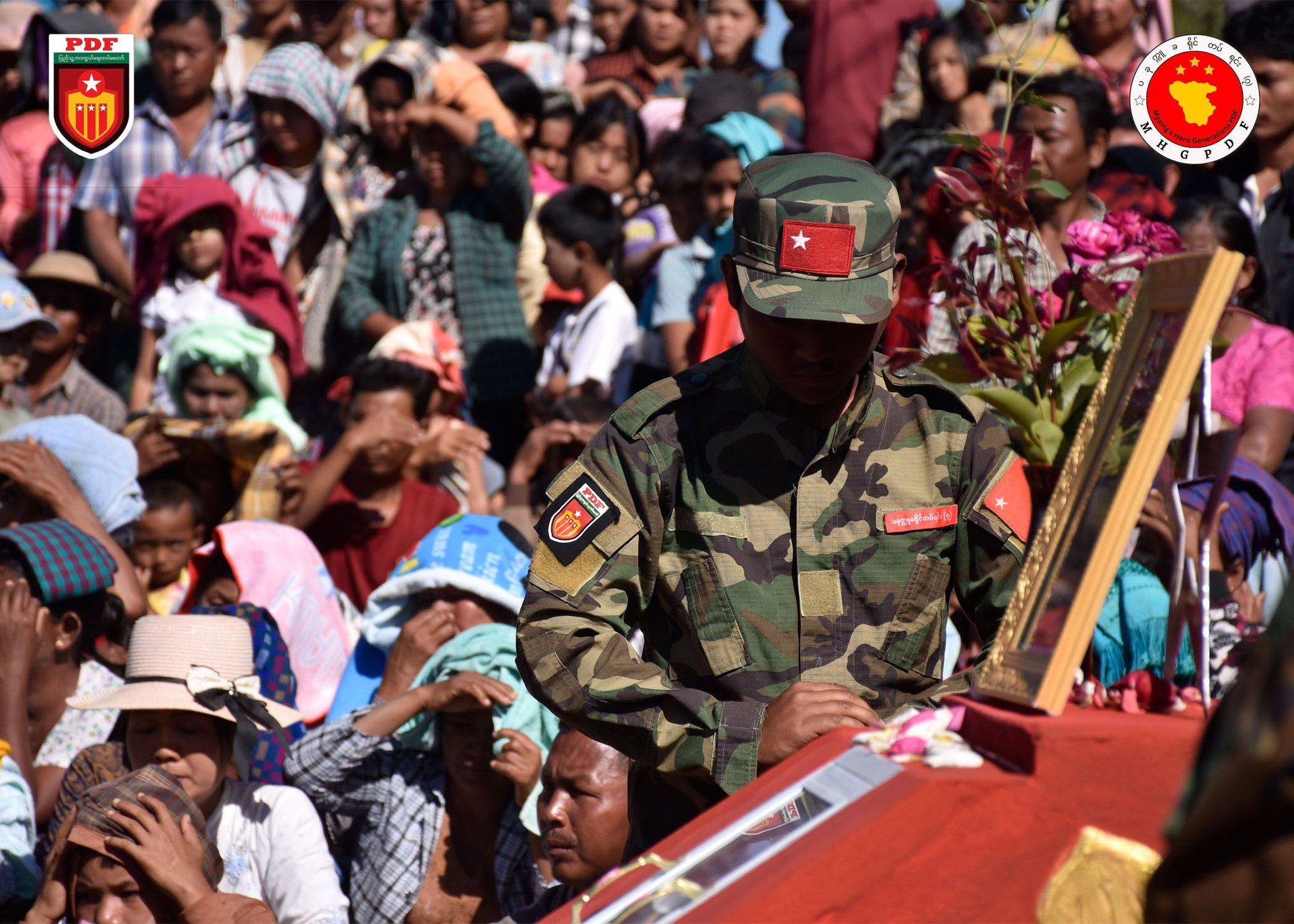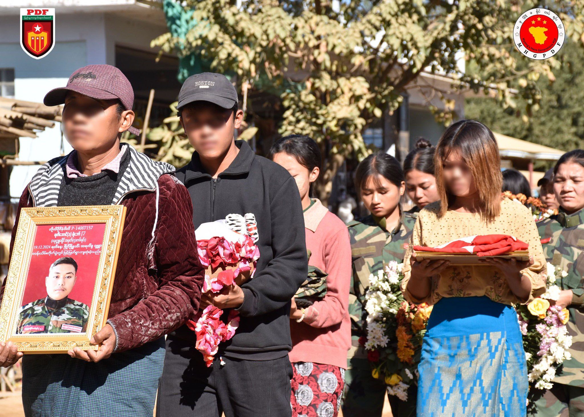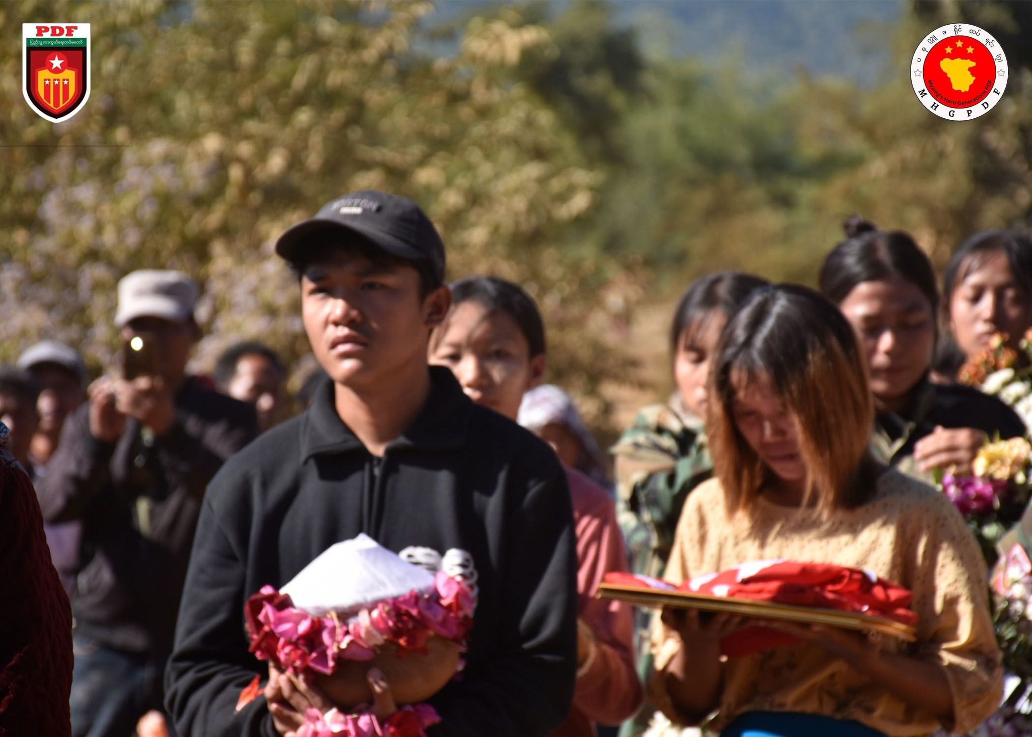 ပြီးခဲ့တဲ့ ဒီဇင်ဘာလ ၁၉ ရက်နေ့က တိုက်ပွဲတစ်ခုအတွင်း မြင့်မြတ်စွာကျဆုံးခဲ့တဲ့ ရဲ့ဘော် J7 ရဲ့ ဈာပနအခမ်းအနားကို ရာနဲ့ချီတဲ့ တော်လှန်ရေးတပ်ဖွဲ့တွေနဲ့ အတူ ပြည်သူတွေက လိုက်လံပို့ဆောင်ခဲ့ကြပါတယ် ။