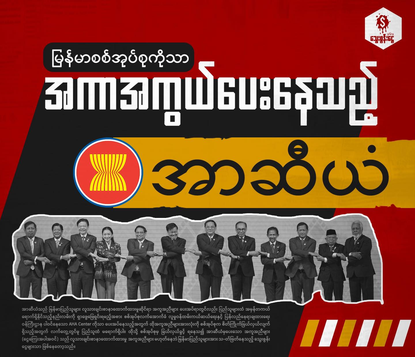 အာဆီယံဟာ အကြမ်းဖက်သ-တ်ဖြတ်မှု၊ စစ်ရာဇဝတ်မှုများစွာ ကျူးလွန်နေတဲ့ မင်းအောင်လှိုင်တို့ စစ်အုပ်စုနဲ့ သာမန်ထိတွေ့ဆက်ဆံခြင်းမျိုးမဟုတ်ဘဲ ၂၀၂၄ အောက်တိုဘာလမှာ ကျင်းပတဲ့ အာဆီယံထိပ်သီးအစည်းအဝေးများတွင် မြန်မာကိုယ်စားပြုအဖြစ် တက်ရောက်ခွင့်ပြုခဲ့ပါသေးတယ်။
