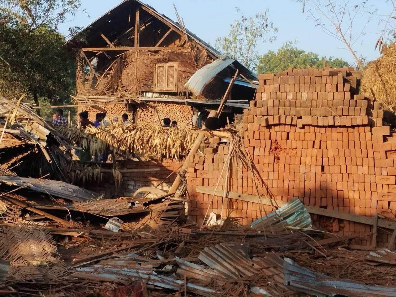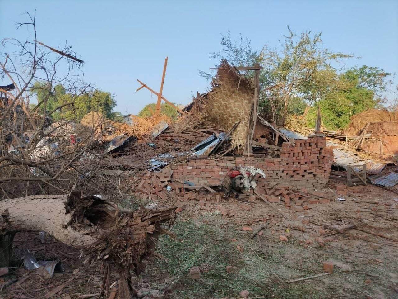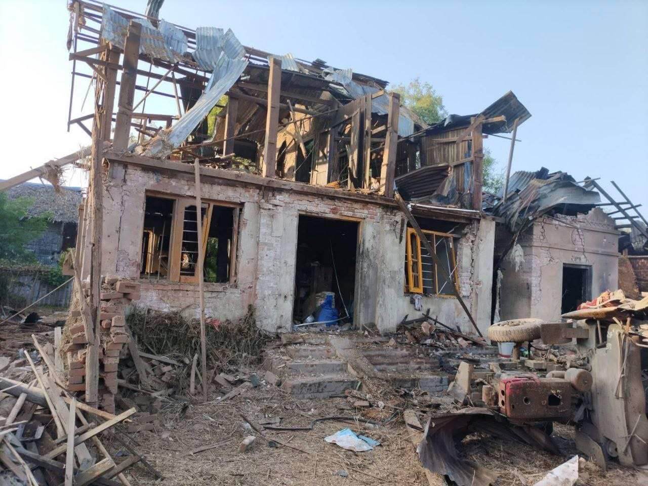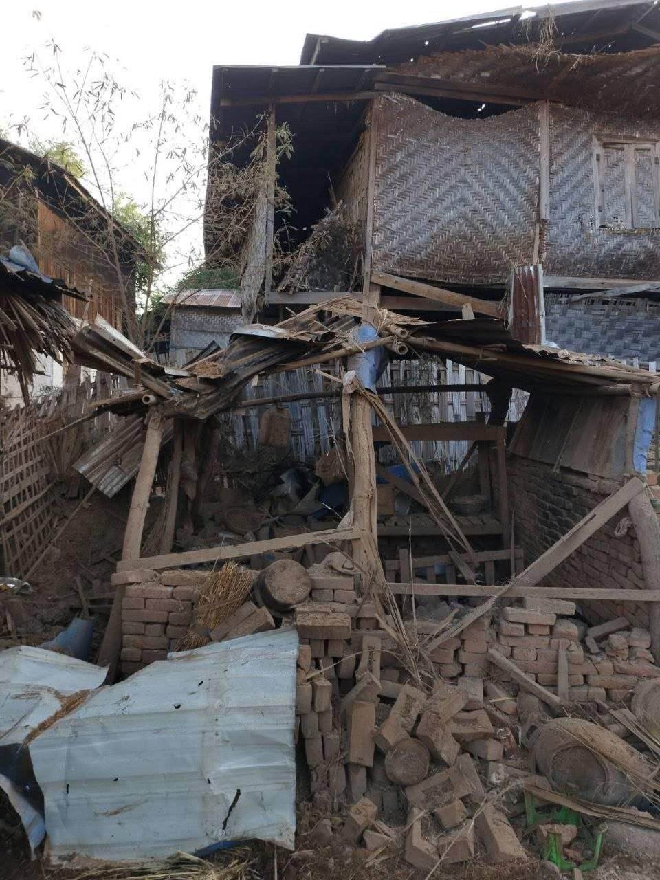 “မိသားစုဝင် ၇ ယောက်ရှိတဲ့ အိမ်ပေါ်ကို ဗုံးသီးကျတာ ၅ ယောက် သေတယ်လို့ သိရတယ်ဗျ။ သေတဲ့သူ ၅ ယောက်မှာ ၂ ယောက်ပဲ အလောင်းရတယ်ပေါ့။ ကျန်တဲ့ ၃ ယောက်က ဘယ်သူဘယ်ဝါဆိုတာတောင် ဖော်လို့မရအောင်ကို ပျက်စီးသွားတယ်လို့ ပြောကြတယ်။ ဂျက်ဖိုက်တာနဲ့ ဗုံးကြဲတာမှာ ထိသွားတာလို့ ထင်ပါတယ်” လို့ ဒေသတော်လှန်ရေးတပ်ဖွဲ့ဝင် ၁ယောက်က မောင်းကို ပြောပါတယ်။
