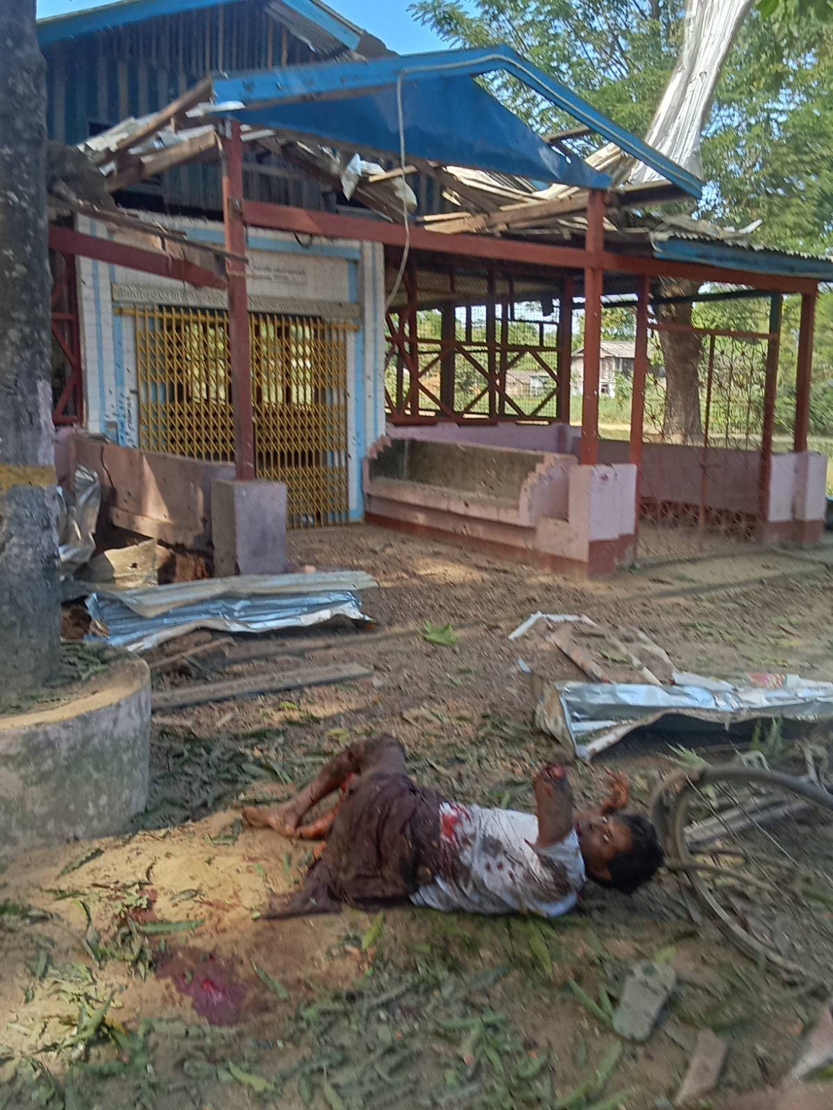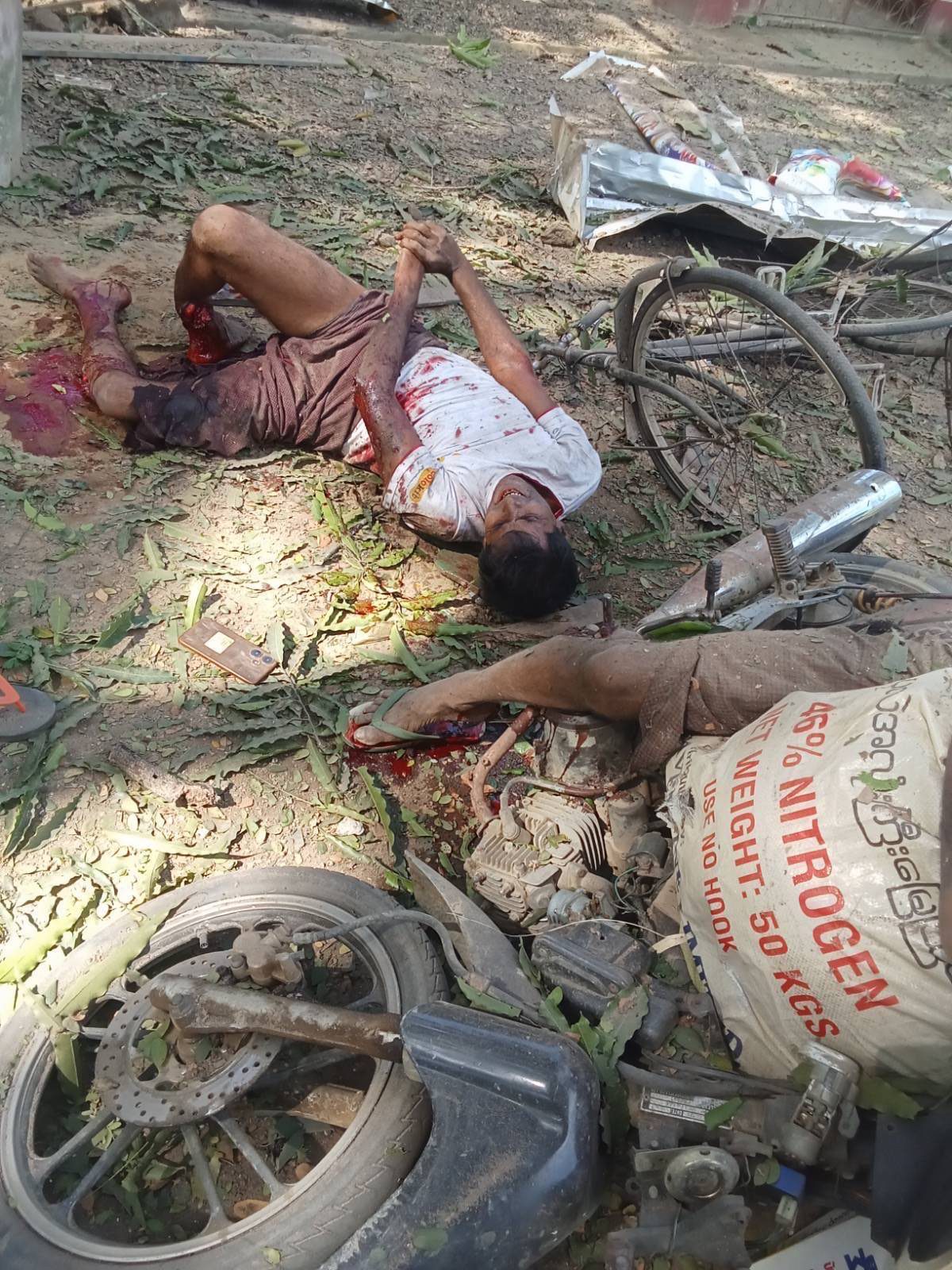 အကြမ်းဖက်စစ်ကောင်စီ ဒရုန်းဖြင့် ဗုံးကြဲမှုအပြီး ထိခိုက်သေဆုံးမှုများ (ဓာတ်ပုံ ဒေသခံ)