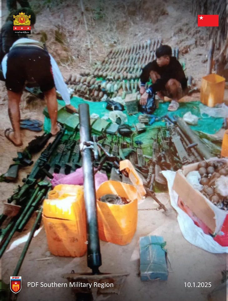 ဇန်နဝါရီလ ပထမနှစ်ပတ်အတွင်း အလင်းဝင်ရောက်လာသူတွေဆီက MA–1 (၁၃) လက်၊ MA-2 (၁) လက်၊ MA-3 (၃) လက်၊ MA-4 (၁)လက်၊ G-3 (၂) လက်၊ MA ကျည်ဘောက် (၂၉) ဘောက် ၊ စနိုက်ဘာ (၁) လက်၊ စက်လက် (၁) လက်၊ ၈၀မမ (၁)လက်၊ ၆၀မမ (၁)လက်၊ လက်ပစ်ဗုံး (၁၀) လုံး၊ 7.62 ကျည် ၅၇၄ တောင့်၊ MA ကျည် ၁၀၅၈ တောင့်၊ ပို့ကျည် ၅ တောင့်၊ အီနာဂါဗုံးသီး ၁ လုံး တို့ သိမ်းဆည်း ရရှိခဲ့တယ်လို့ NUG ကာကွယ်ရေးဝန်ကြီးဌာနက ထုတ်ပြန်ထားပါတယ်။