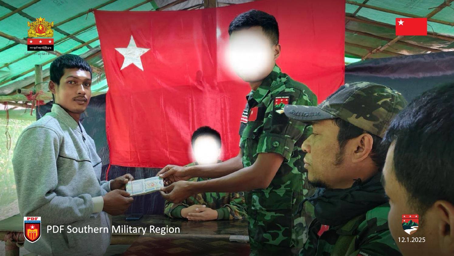 ဇန်နဝါရီလ ၁၁ ရက်မှာလည်း အမှတ်(၁၂) တပ်မတော် တန်းမြင့်လေ့ကျင့်ရေးကျောင်း အပတ်စဉ် (၅) သင်တန်းဆင်းကာ ခမရ ၅၅၉ မှာ တာဝန်ထမ်းဆောင်နေတဲ့ စစ်ကောင်စီတပ်သား၂ ယောက်က တောင်ပိုင်းစစ်ဒေသ၊ စစ်ဒေသခွဲ အမှတ် ၃၊ ဗျူဟာ ၃၃ ဒေါနတပ်ရင်းဆီ MA-1 (၁)လက်၊ MA-3 (၁)လက်၊ ကျည် ၁၇၅တောင့်၊ ကျည်ဘောက် ၆ ဘောက် ၊ လက်ပစ်ဗုံး (၁) လုံးနဲ့အတူ အလင်းဝင်လာတယ်လို့ သိရပါတယ်။