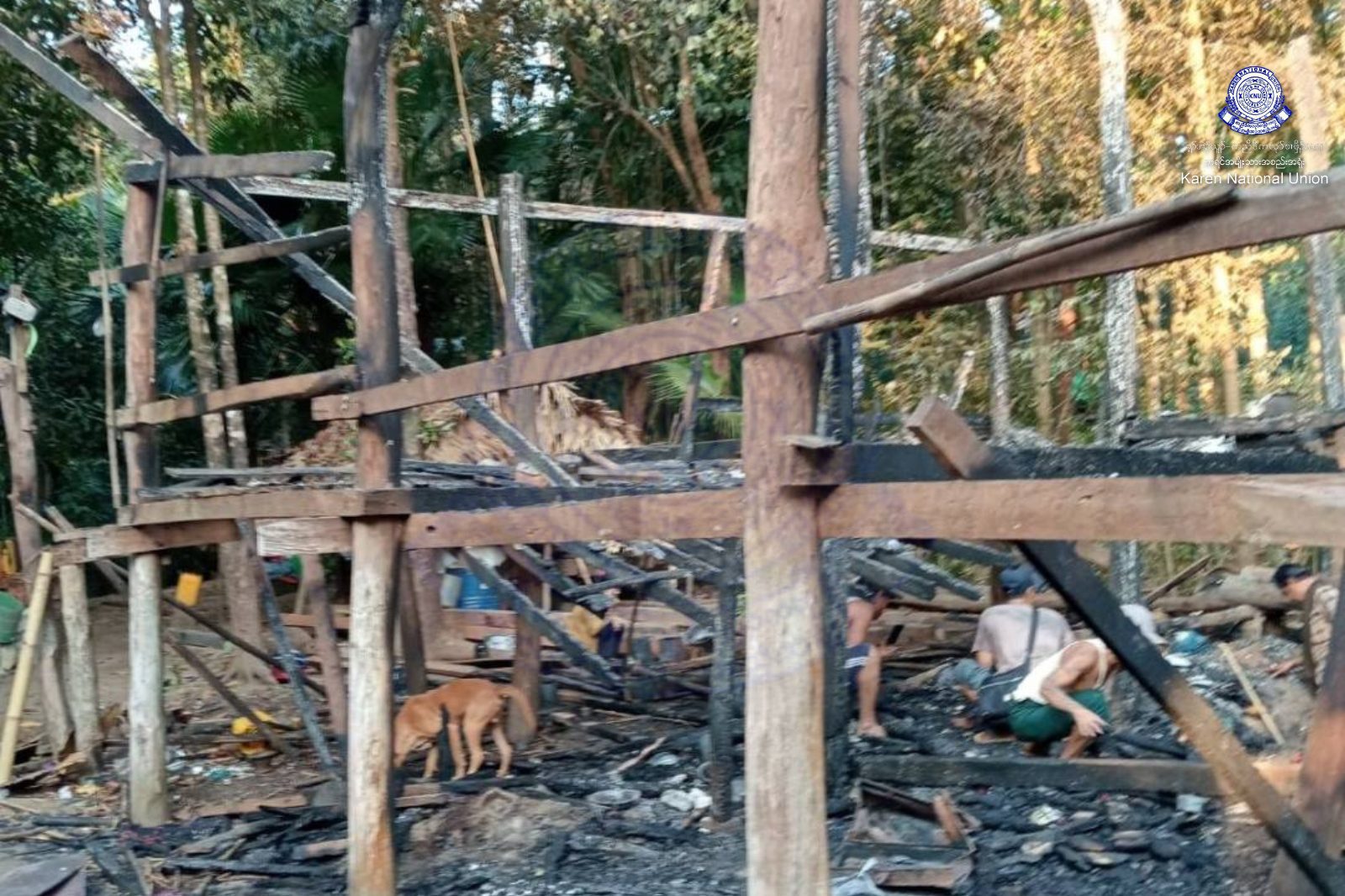 လက်နက်ကြီးပစ်ခတ်မှုကြောင့် မီးလောင်ပျက်စီးမှုများ (ဓာတ်ပုံ KNU)