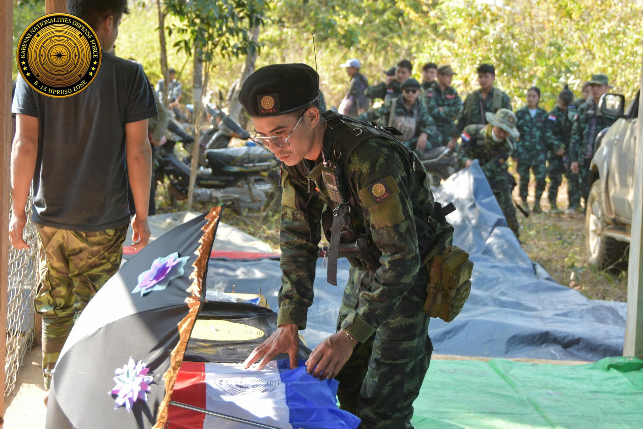 ကရင်နီပြည်၊ ဘောလခဲမြို့နယ် စစ်ဆင်ရေးအတွင်း ကျဆုံးခဲ့တဲ့ ဒရုန်းတပ်သားရဲ့ စျာပနအခမ်းအနား ပြုလုပ်ခဲ့တယ်လို့ ကရင်နီ အမျိုးသားများကာကွယ်ရေးတပ် – KNDF တပ်ရင်းအမှတ် (၁၅) က ထုတ်ပြန်ထားပါတယ်။