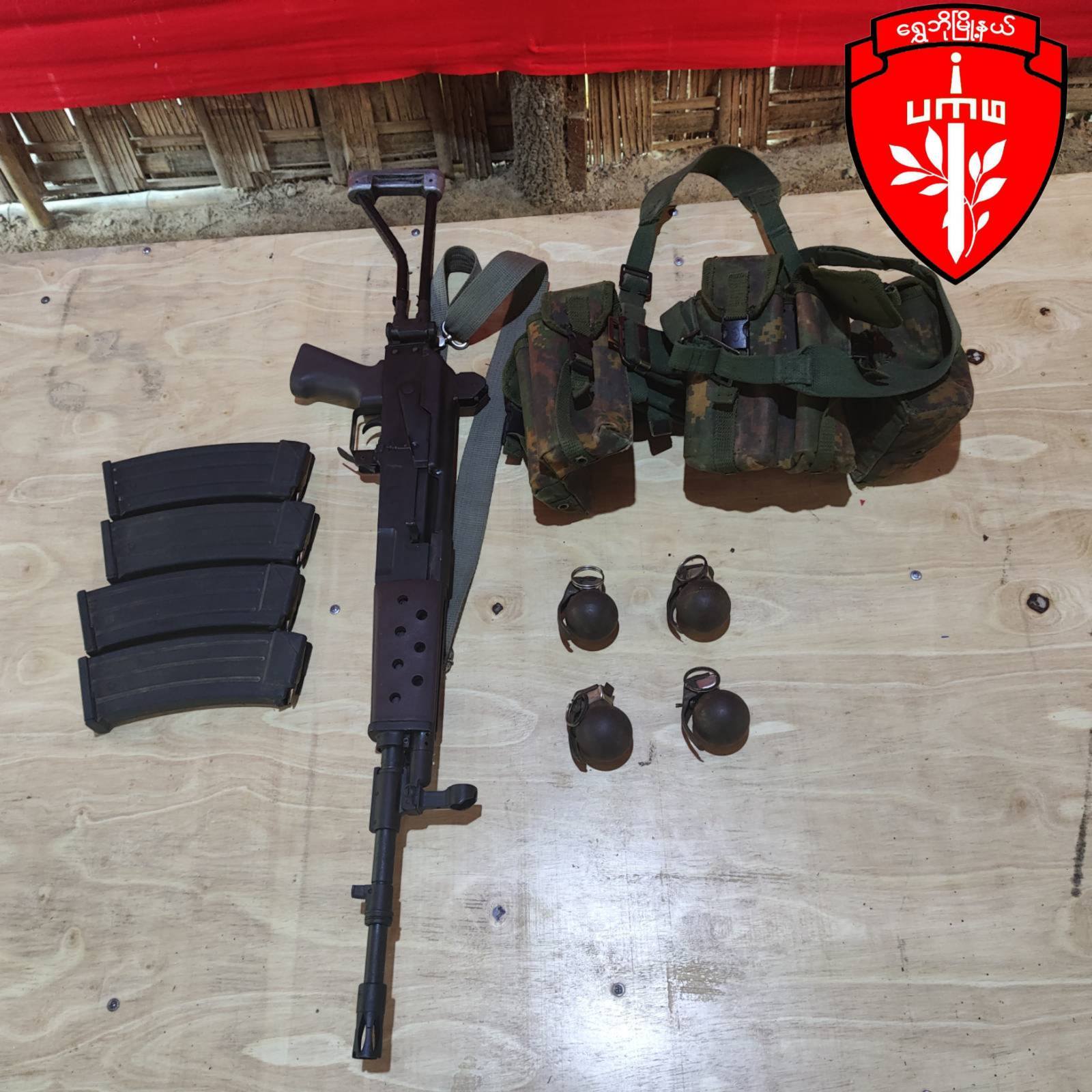 စစ်ကောင်စီ တပ်သားသစ်ဟာ MA3 သေနတ် ၁ လက်၊ ကျည်ဘောက် ၄ ဘောက်၊ ၅.၅၆ ကျည် ၁၀၈ တောင့်၊ လက်ပစ်ဗုံး ၄ လုံး ယူဆောင်လာခဲ့တယ်လို့ သိရပါတယ်။