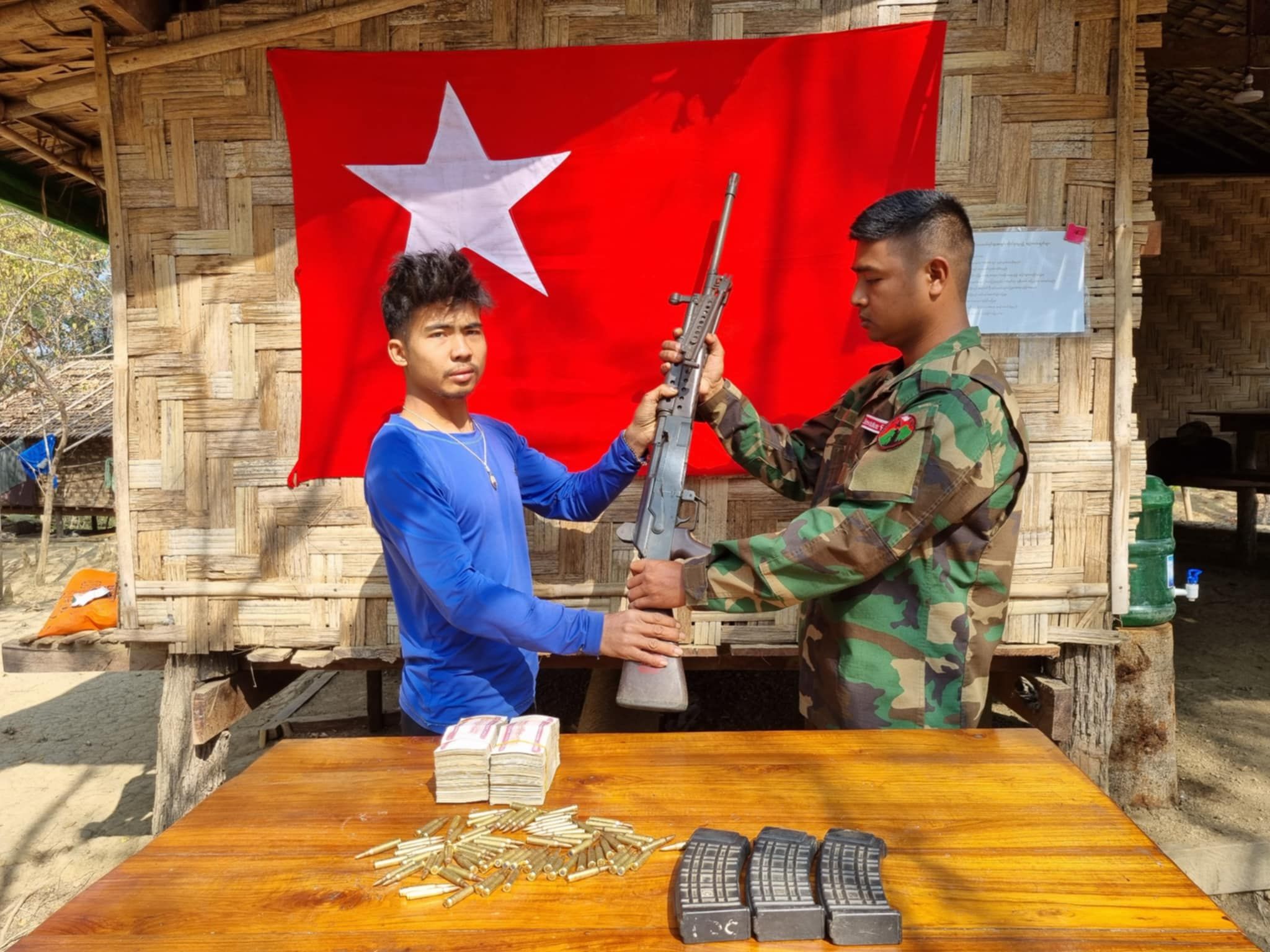 ပြီးခဲ့တဲ့ ဇန်နဝါရီ ၃၁ ရက်က ဗျူဟာ အမှတ် – ၈၁ (ယောဗျူဟာ) နဲ့ အမှတ် (၁) စစ်ဒေသ ၊ ဂန့်ဂေါခရိုင်အမှတ် (၂ / ၄ / ၁၀) တပ်ရင်းဆီ ထီးလင်းမြို့၊ ရုပ်သံကုန်းမှာ တာဝန်ကျနေတဲ့ စစ်ကောင်စီတပ်သားက MA 2 (၁)လက်၊ MA ကျည်ဘောက် (၄)ဘောက် ၊ 5.56 ကျည် (၁၂၀) တောင့်နဲ့ ပြည်သူ့ရင်ခွင် ခိုလှုံလာခဲ့ပြီး ဂုဏ်ပြုဆုငွေ ကျပ်သိန်း (၅၀) ကျပ်တိတိ ချီးမြှင့်ခဲ့တယ်လို့ သိရပါတယ်။