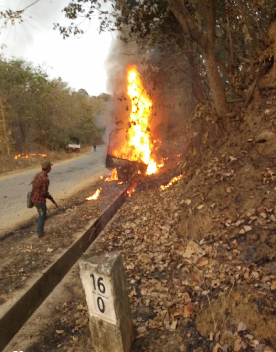 မနေ့က ဖေဖော်ဝါရီလ ၁၈ ရက်၊ ညနေ ၅နာရီ ဝန်းကျင်အချိန်မှာ ရိက္ခာနဲ့ လက်နက်တွေ သယ်ယူပို့ဆောင်ပေးနေတဲ့ ယာဉ် ၂စီးကို ပေါက်ခေါင်းမြို့နယ် ပြည်-ပေါင်းတလည်ကြား တောင်ဆင်းဝဂွေအနီးမှာ ၃၆၀၁ တပ်ရင်းစစ်ကြောင်းက ကြားဖြတ်တိုက်ခိုက်ခဲ့တာ ဖြစ်ပါတယ်။
