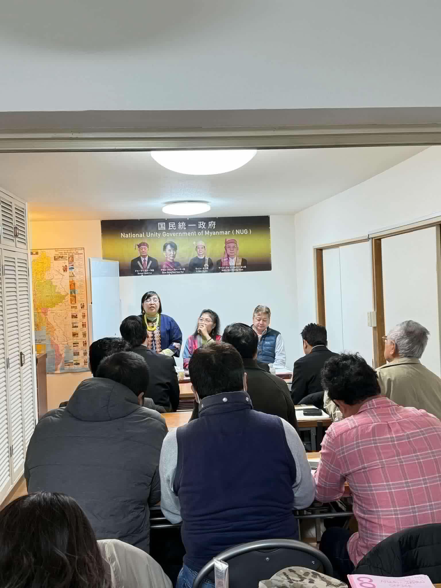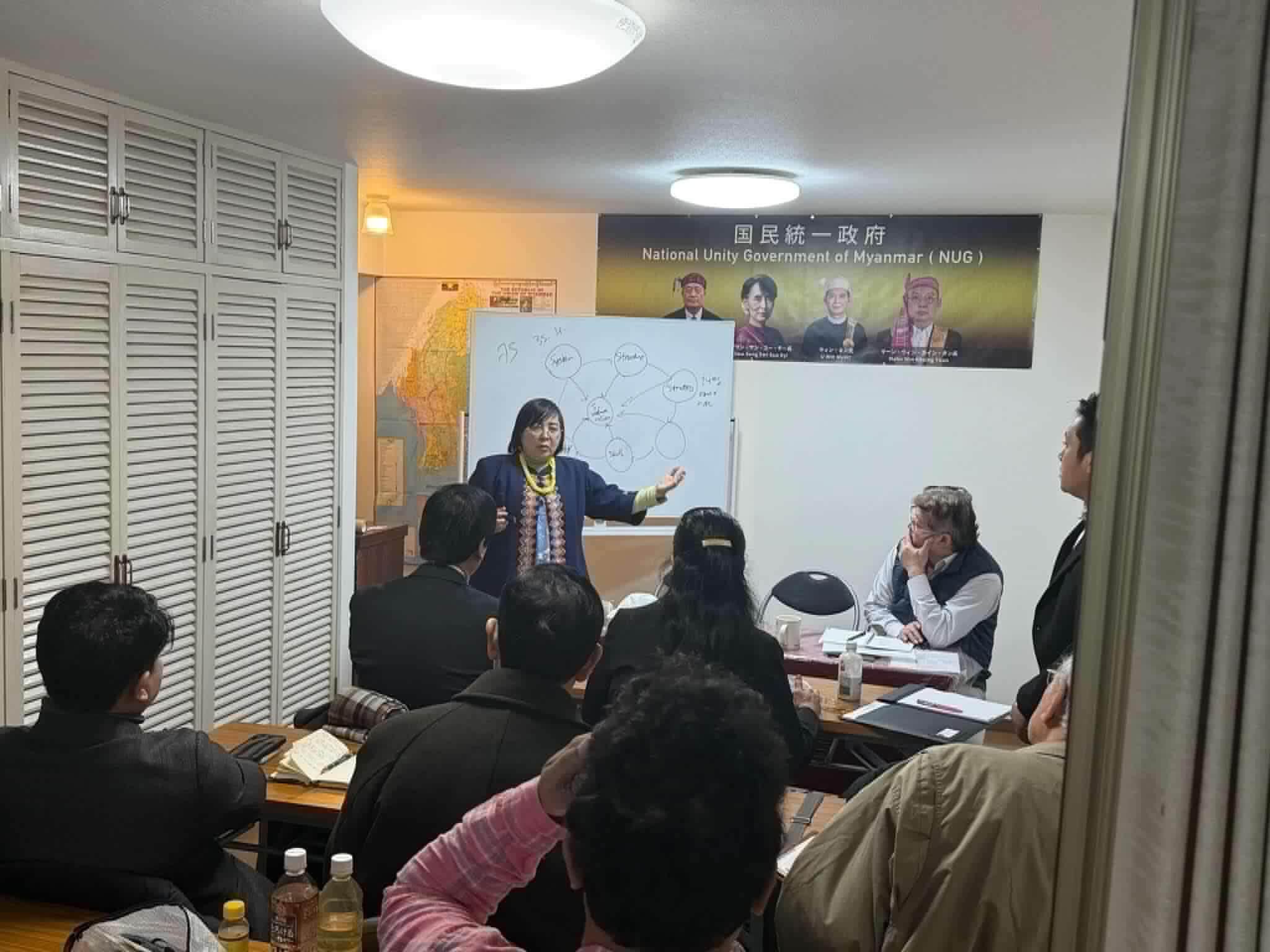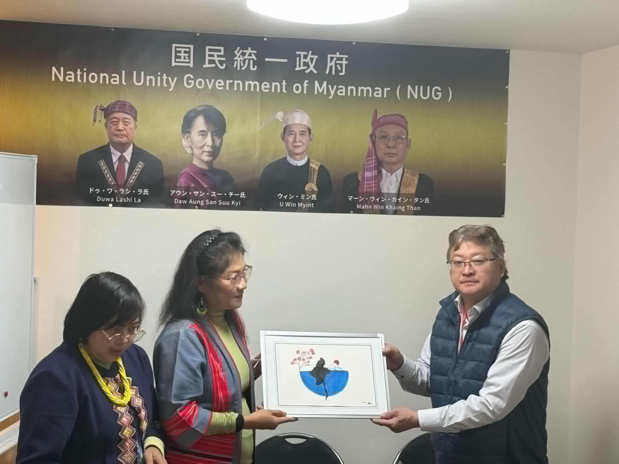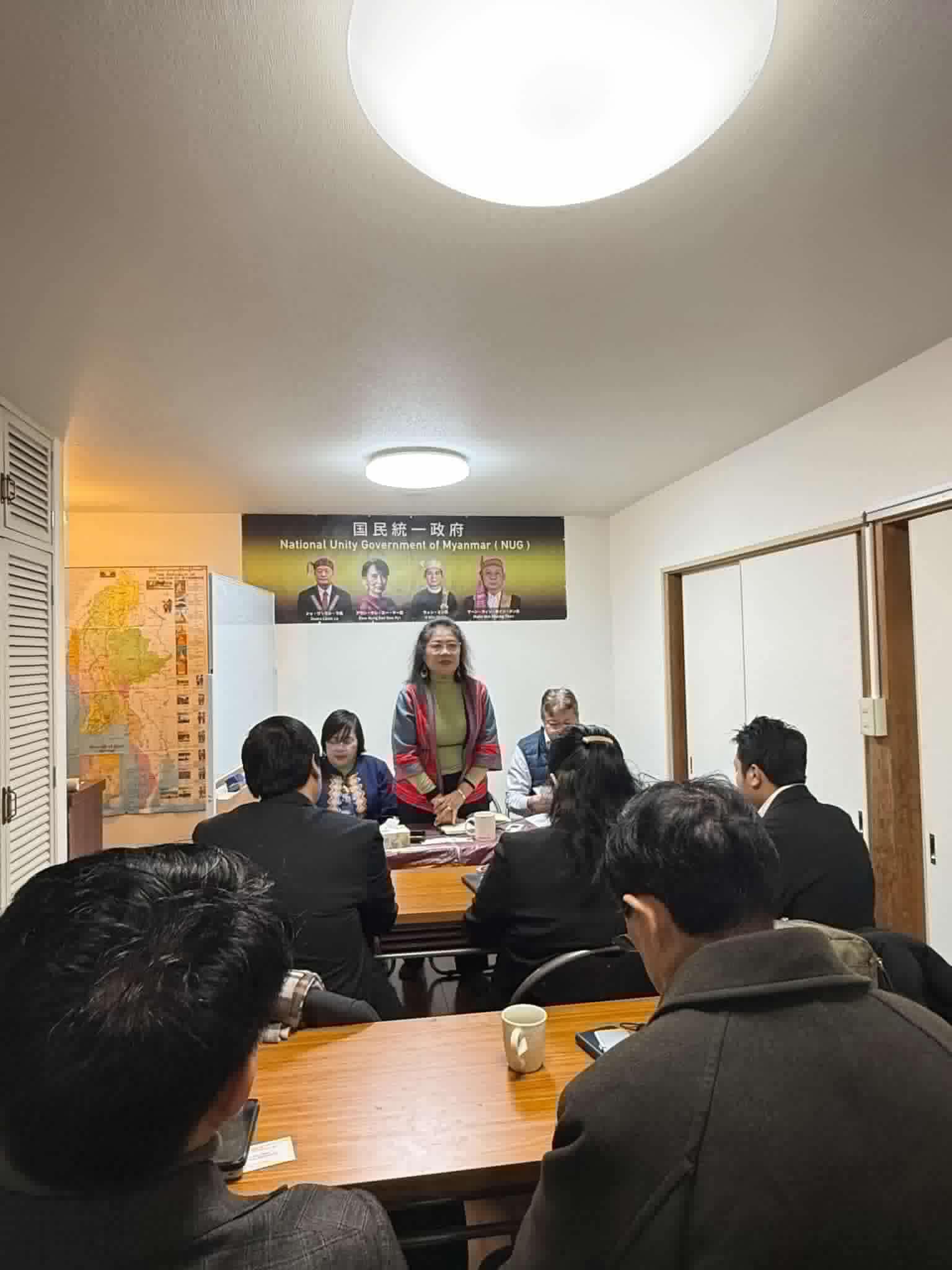 NUG အမျိုးသမီး၊လူငယ်နဲ့ ကလေးသူငယ်ရေးရာဝန်ကြီး နော်စူစန်နာလှလှစိုးနဲ့ ဝန်ကြီးဌာနအကြံပေးဖြစ်သူ ဒေါ်ရွှေရွှေစိန်လတ်တို့က ဂျပန်နိုင်ငံဆိုင်ရာကိုယ်စားလှယ်ရုံးက ကိုယ်စားလှယ်ဦးစောဘလှသိန်းနဲ့ အဖွဲ့ဝင်တွေကို ဖေဖော်ဝါရီ ၉ ရက်မှာ တွေ့ဆုံခဲ့တယ်လို့ ဆိုပါတယ်။