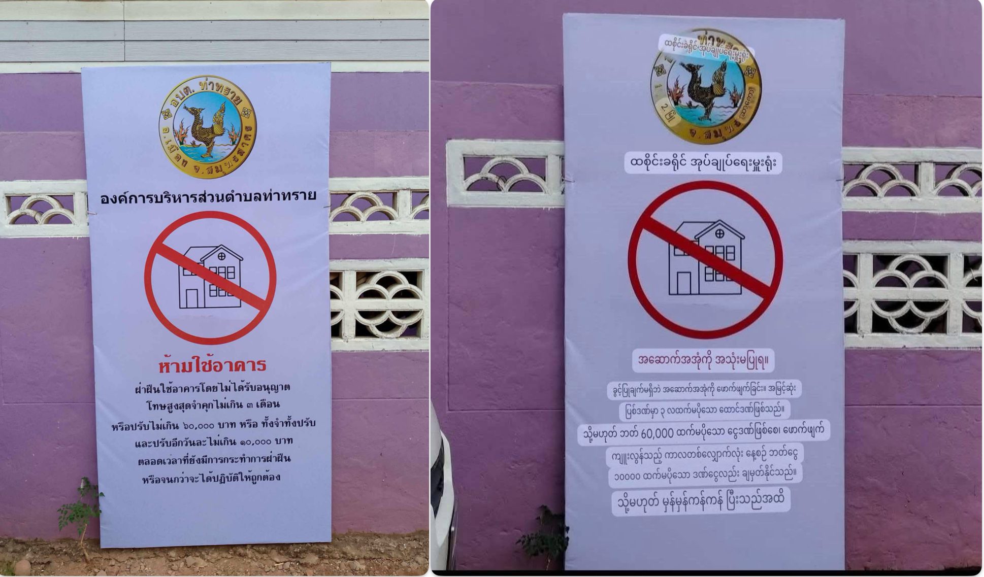 ပြီးခဲ့တဲ့ ဖေဖော်ဝါရီလ ၁၈ ရက်နေ့မှာ အဆိုပါရုံးကို ထိုင်းအစိုးရက လာရောက်စစ်ဆေးကာ ဒဏ်ငွေရိုက်ပြီးနောက် ၂၀ ရက်နေ့မှာတော့ အဆောက်အဦးကိုပါ ဖြိုဖျက်ပေးဖို့ စာလာကပ်သွားတာ ဖြစ်တယ်လို့ သိရပါတယ်။