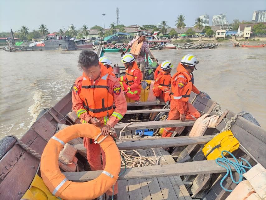 ကလီဆိပ်ကနေ ပန်းဆိုးတန်းဆိပ်ကမ်းအထိ ဆိပ်ကြီးခနောင်တိုမြို့နယ် မီးသတ်စခန်းက ရှာဖွေကယ်ဆယ်ရေးတပ်ဖွဲ့ဝင်တွေ၊ ပန်းဆိုးတန်းဆိပ်ကမ်းကနေ ဗိုလ်တစ်ထောင်ဆိပ်ကမ်းအထိ ကျောက်တံတားမြို့နယ် မီးသတ်စခန်းက ရှာဖွေကယ်ဆယ်ရေးတပ်ဖွဲ့ဝင်တွေ ကယ်ဆယ်ရေးပြုလုပ် နေတယ်လို့ သိရပါတယ်။