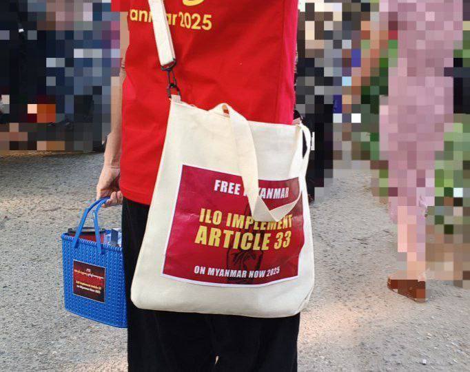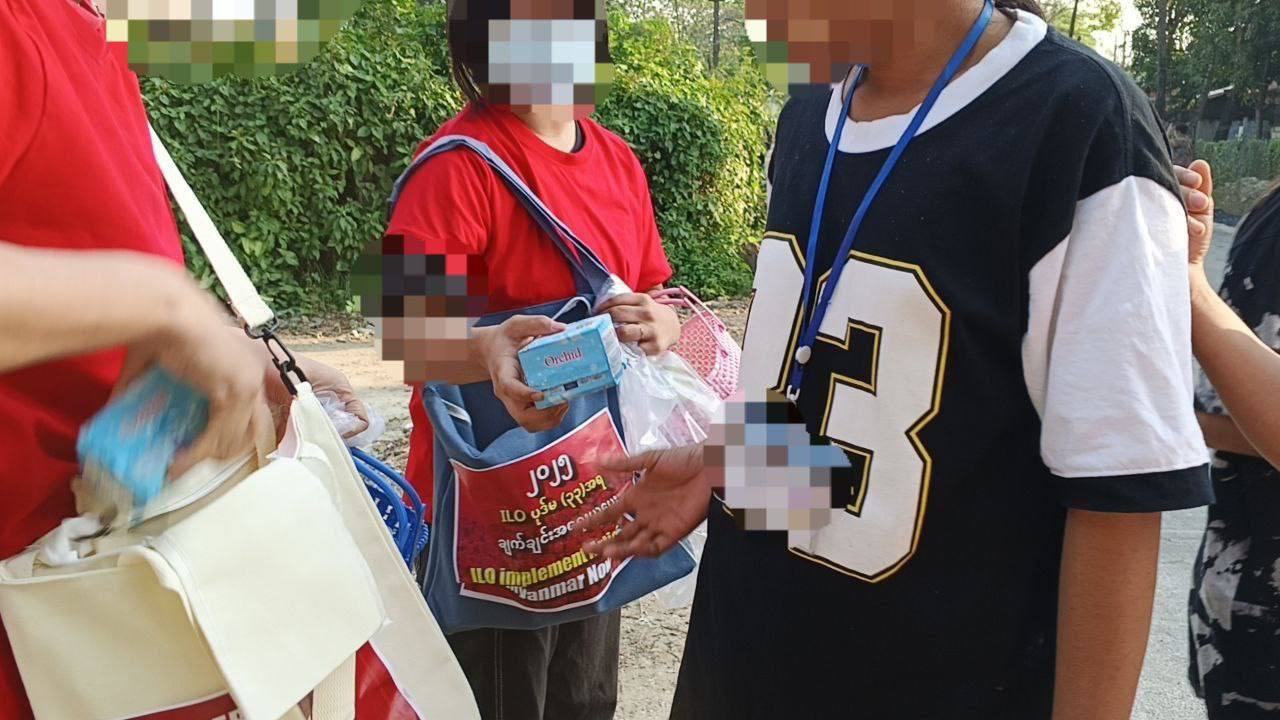ရန်ကုန်မြို့ စက်မှုဇုန်တွေမှာ အကြမ်းဖက်စစ်ကောင်စီကို “ILO မှ ပုဒ်မ ၃၃” နဲ့ ဘာကြောင့် အရေးယူဖို့ လိုအပ်သလဲဆိုတဲ့ အချက်တွေ ပါဝင်တဲ့သတင်းစကားတွေကို အမျိုးသမီး လစဥ်သုံးပစ္စည်းတွေမှာ ထည့်သွင်းပြီး အလုပ်သမားထုဆီ ဖြန့်ဝေတဲ့ လှုပ်ရှားမှု ပြုလုပ်ခဲ့တယ်လို့ သိရပါတယ်။