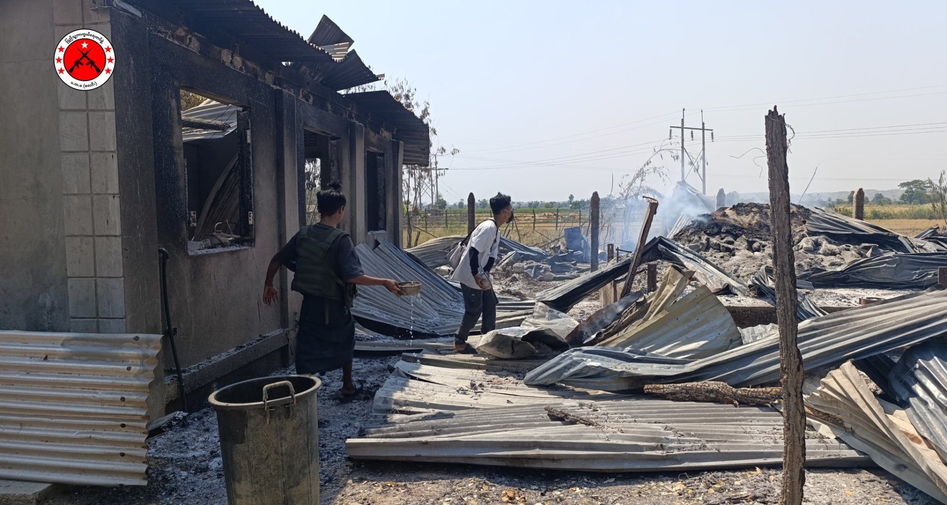 အကြမ်းဖက်စစ်ကောင်စီကြောင့် စလင်းမြို့နယ်အတွင်းက ကျေးရွာများ မီးလောင်ပျက်စီးခဲ့စဥ် (ဓာတ်ပုံ စလင်းမြို့နယ် ပြည်သူ့ကာကွယ်ရေးအဖွဲ့)