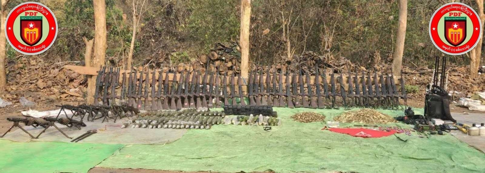 ဒါ့အပြင် အကြမ်းဖက်စစ်ကောင်စီတပ်ဆီက MA-1 (၂၉) လက်၊ MA-2 (၆) လက်၊ MA-3 (၁၂) လက်၊ MA-4 (၃) လက်၊ MA-11 (၁) လက်၊ MA-15 (၁) လက်၊ Anti Drone Gun (၁) လက်၊ MA-10 ဗုံးသီး (၃၇) လုံး၊ MA ကျည် (၈၀၀၀) တောင့်၊ MA-15 ကျည် (၂၀၀၀) တောင့်၊ ၆၀ မမ ဗုံးသီး (၁၇) လုံး၊ ကျည်အိမ် (၁၁၃) ခု၊ ကျောပိုး Jammer (၁) ခု၊ ဆက်သွယ်ရေးစက် (၁) လုံး၊ အထိုင်ဖုန်း (၁) လုံး၊ ကျည်ကာဦးထုပ် (၁၂) လုံး သိမ်းဆည်းရမိခဲ့တယ်လို့ အမှတ် (၁) စစ်ဒေသက ထုတ်ပြန်ထားပါတယ်။