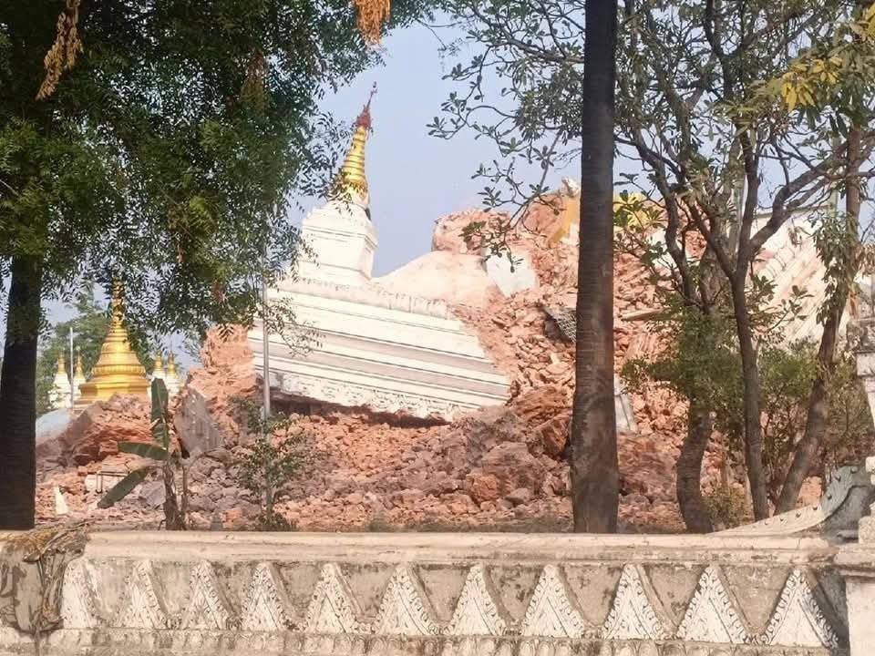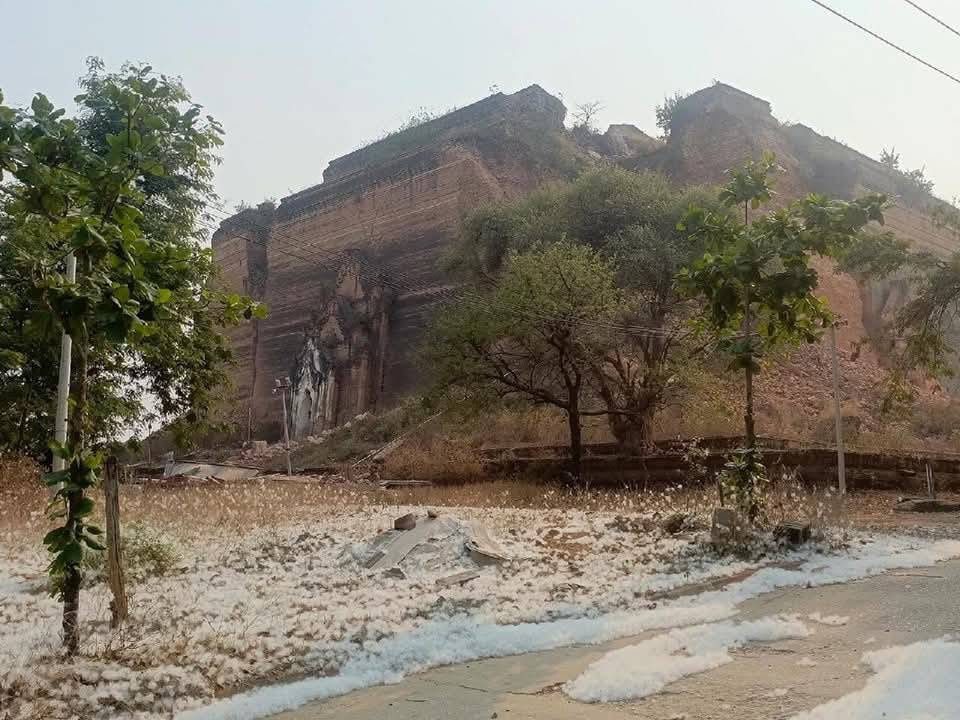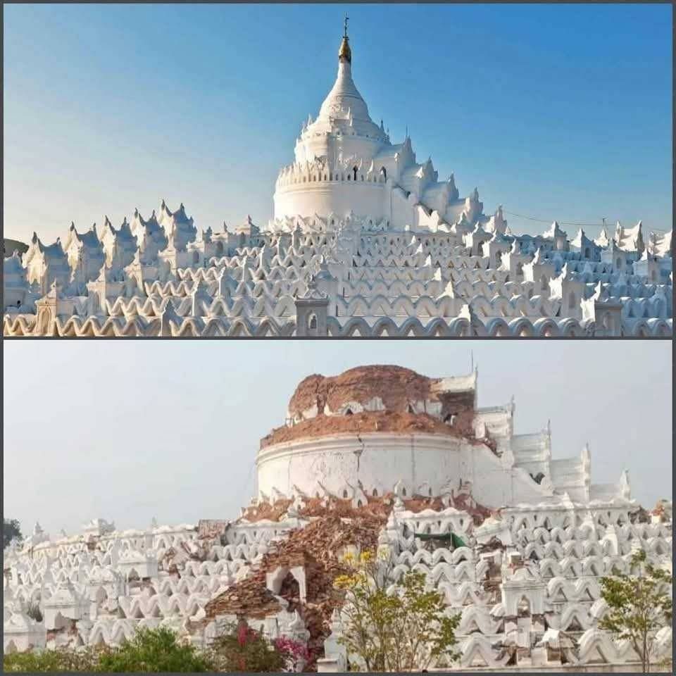 ငလျင်ဒဏ်ကြောင့် ပြိုကျပျက်စီးခဲ့တဲ့ မင်းကွန်းမြသိန်းတန်ဘုရားအပါအဝင် စေတီပုထိုးကျောင်းကန်များ (ဓာတ်ပုံ လူမှုကွန်ရက်)