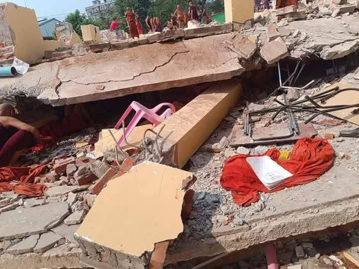 အဆိုပါ ဗိမာန် (၃) ထပ်ဆောင်အတွင်း သံဃာအပါး ၂၀၀ကျော် စာဖြေနေချိန်မှာ ငလျင်လှုပ်ခတ်ခဲ့တာဖြစ်ပြီး၊ ဗိဗာန်ပြိုကျခဲ့မှုကြောင့် စာဖြေ သံဃာအပါး ၁၀၀ ကျော်ဟာ အဆိုပါအဆောက်အအုံပျက်ထဲမှာ ပိတ်မိနေခဲ့တာဖြစ်တယ်လို့ သိရပါတယ်။
