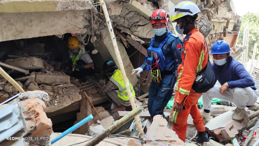 ဒါ့အပြင် အထပ်ပေါင်းများစွာ မြေကြီးအတွင်း ကျွံဝင်ပြိုကျသွားတဲ့ Sky Villa ကွန်ဒိုမှာလည်း တရုတ်ကယ်ဆယ်ရေးတပ်ဖွဲ့တွေနဲ့ မြန်မာနိုင်ငံမီးသတ်တပ်ဖွဲ့ဝင်တွေ ပူးပေါင်းပြီး ရှာဖွေကယ်ဆယ်ရေးတွေ လုပ်ဆောင်နေပြီလို့ သိရပါတယ်။