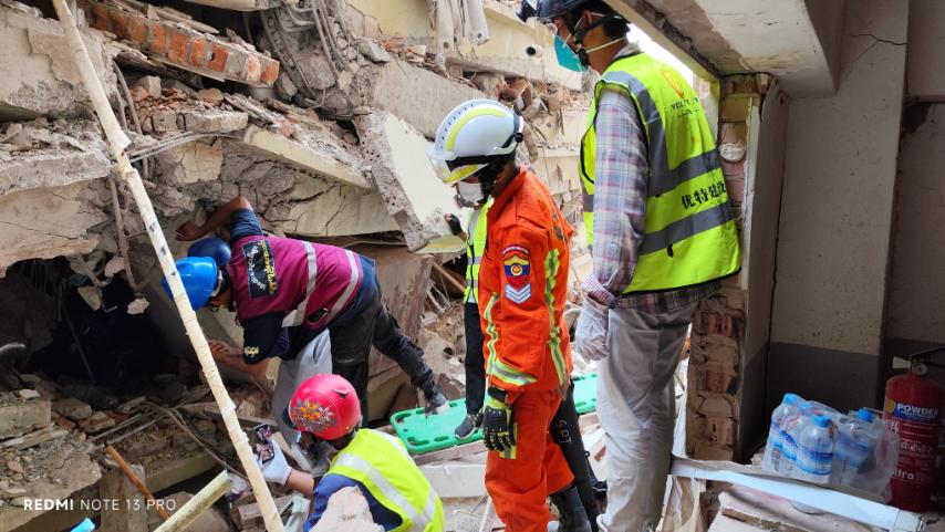 Mandalay Great Wall Hotel တစ်ခြမ်းပြိုကျခဲ့ပြီး လူဦးရေ ၈၀ထက်မနည်း ပိတ်မိနေတဲ့အခြေအနေမှာ အိန္ဒိယနိုင်ငံက ကယ်ဆယ်ရေးတပ်ဖွဲ့ဝင်တွေဟာ မြန်မာနိုင်ငံမီးသတ်တပ်ဖွဲ့နဲ့ ပူးပေါင်းပြီး ရှာဖွေကယ်ဆယ်ရေးတွေ လုပ်ဆောင်နေတယ်လို့ အသိပေးထားပါတယ်။