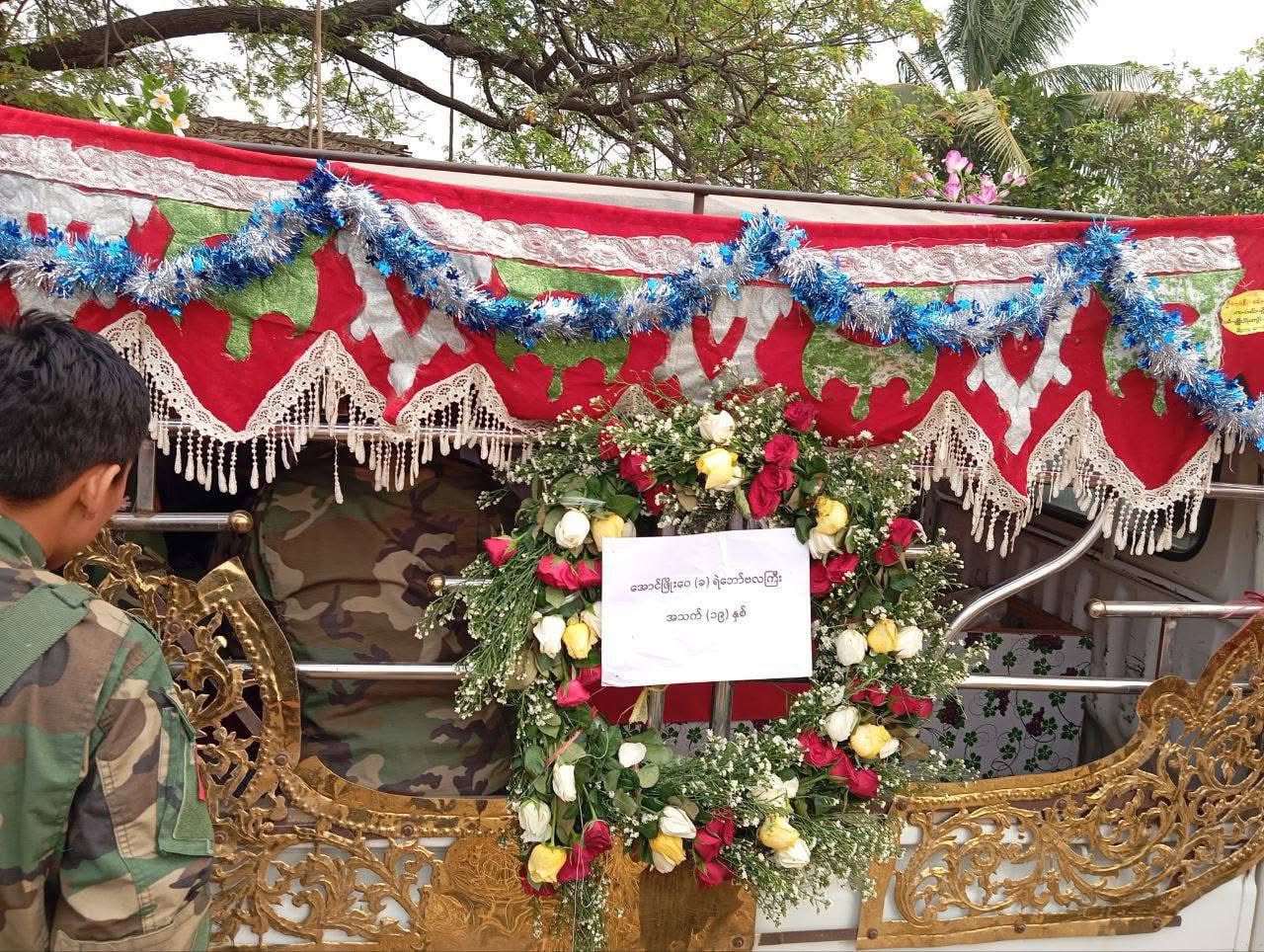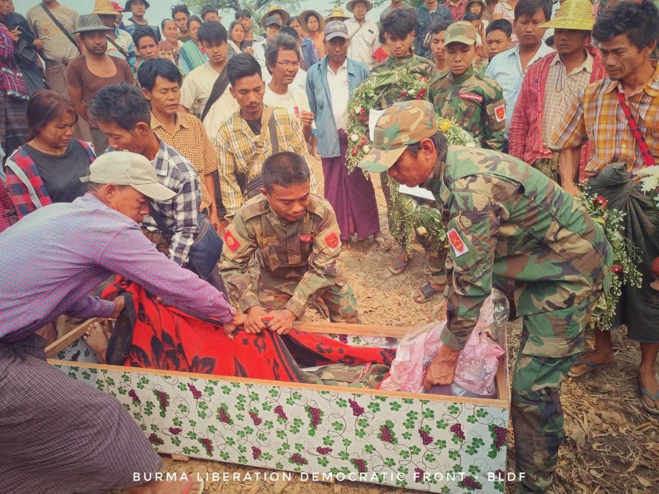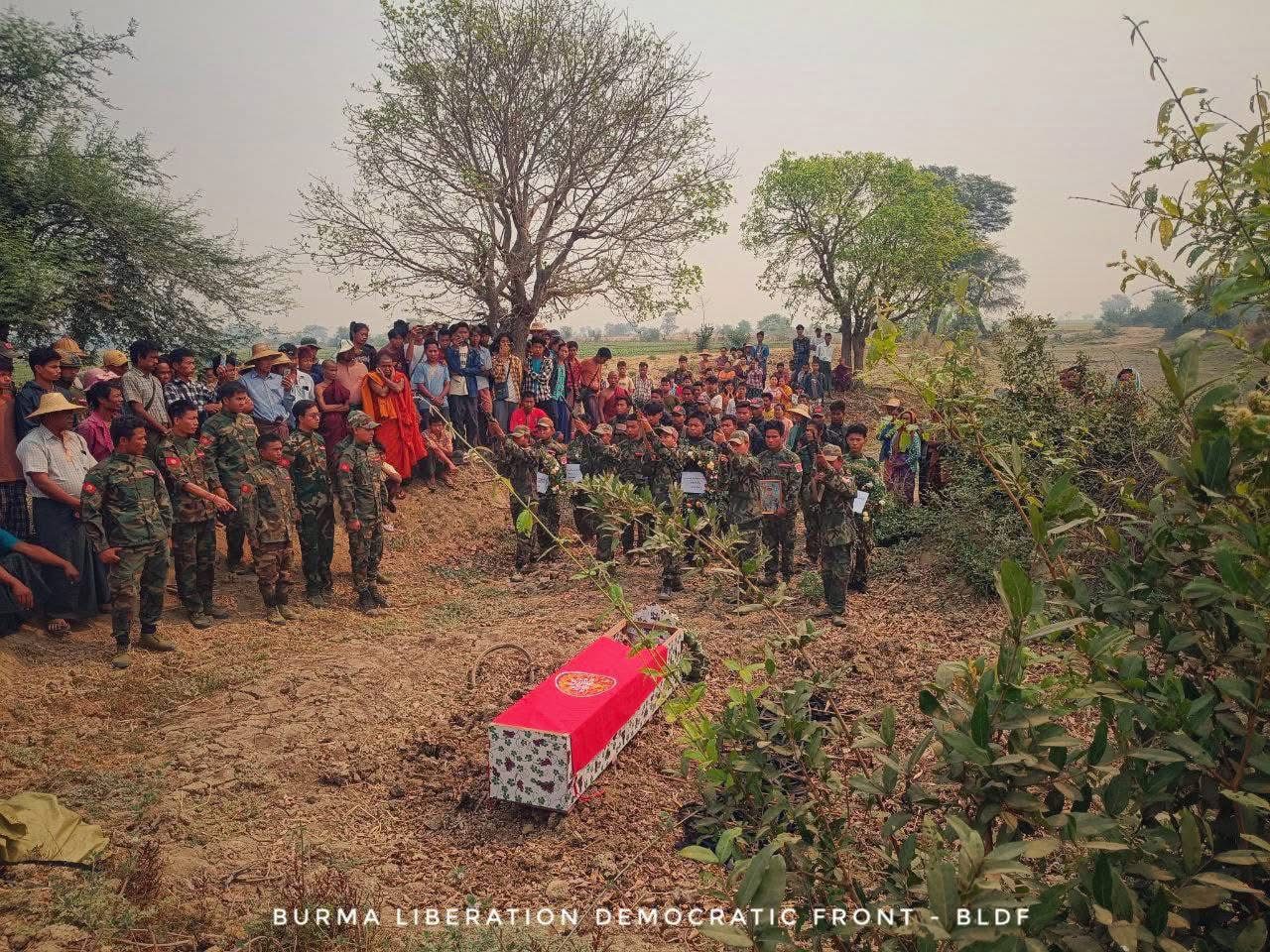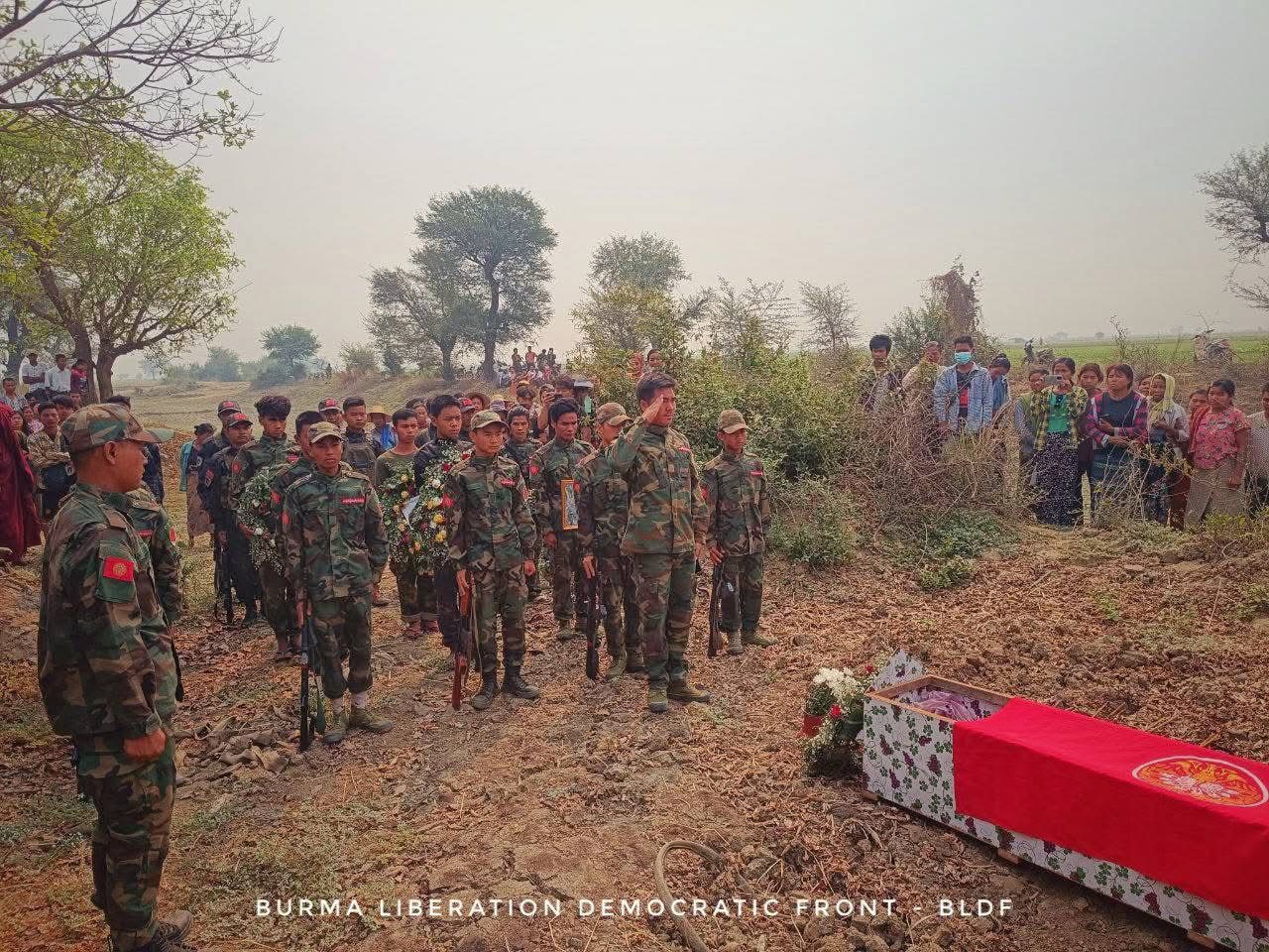 အကြမ်းဖက်စစ်ကောင်စီတပ်ကို တော်လှန်တိုက်ခိုက်ရင်း ရှေ့တန်းစစ်မြေပြင်မှာ ကျဆုံးခဲ့တဲ့ ဗမာလွတ်မြောက်ရေးဒီမိုကရက်တစ်တပ်ဦး – BLDF ရဲဘော်အောင်ဖြိုးဝေ (ခ) ဗလကြီး (ခ)နတ်ဆိုးရဲ့ စျာပနအခမ်းအနားကို ဧပြီ ၆ ရက် မနေ့က ပြုလုပ်ခဲ့တယ်လို့ သိရပါတယ်။