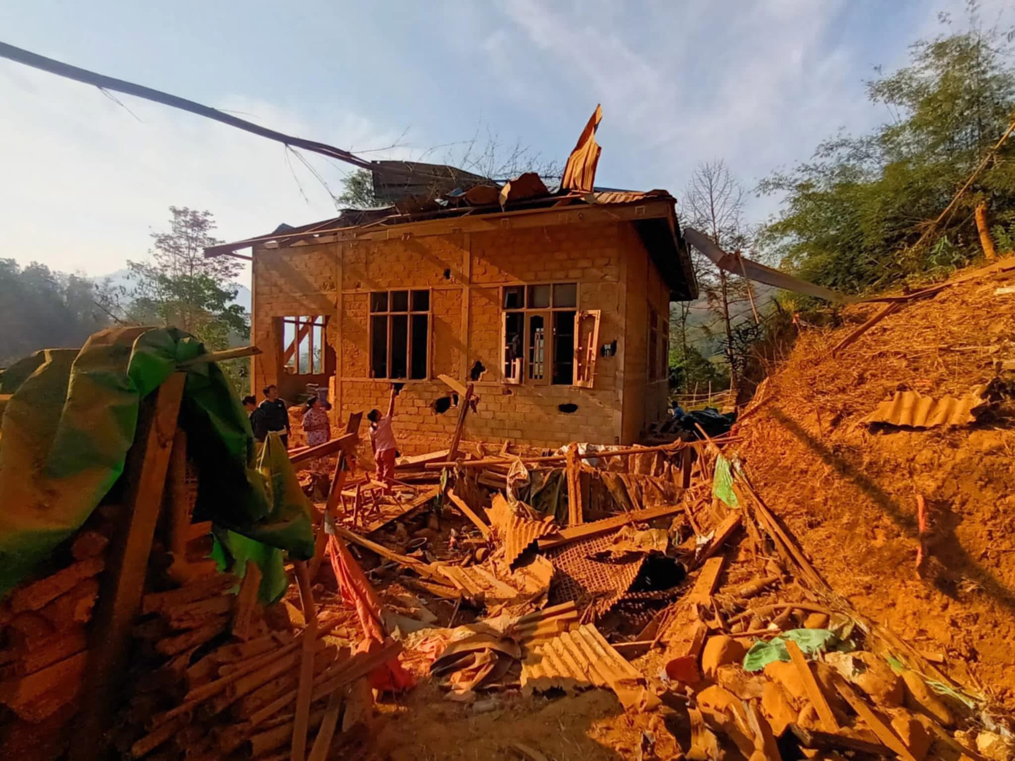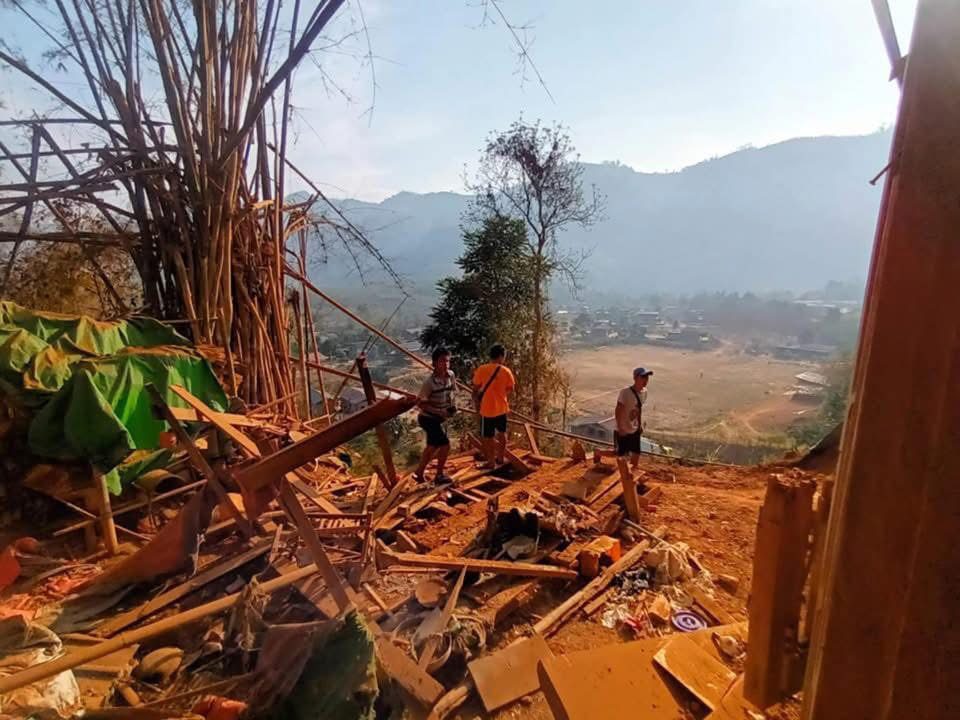 စစ်တပ်က အခုလို ဗုံးကြဲတိုက်ခိုက်ခဲ့မှုကြောင့် ဒေသခံ ၂ယောက် ဒဏ်ရာရရှိခဲ့ပြီး လူနေအိမ်တချို့ ထိခိုက်ပျက်စီးခဲ့ရပါတယ်။
