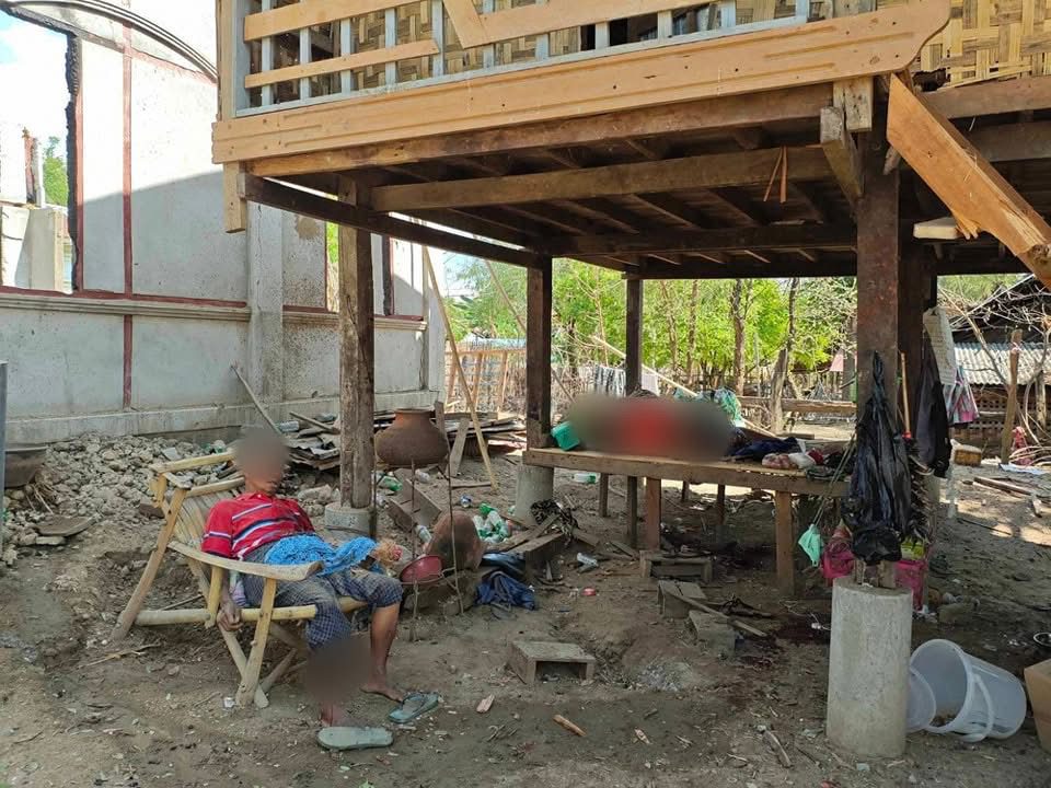 ဝက်လက်မြို့နယ်၊ သစ်ဆိမ့်ရွာဗုံးကြဲတိုက်ခိုက်ခံရပြီးနောက်မြင်ကွင်း (ဓာတ်ပုံ ဝက်လက်မြို့နယ် ရွာဇော်ကြီး)