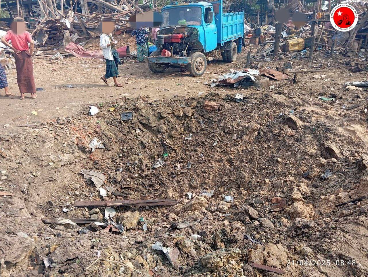 မနေ့က ဧပြီလ ၂၀ ရက် ည ၇ နာရီ ဝန်းကျင်အချိန်မှာ အဆိုပါ သင်တောကျေးရွာကို တံတားဦးလေတပ်ကနေ ဂျက်ဖိုက်တာလေယာဉ်နဲ့ ပေါင် ၅၀၀ ဗုံး ၂လုံး ကြဲချကာ လေကြောင်း တိုက်ခိုက်မှု ပြုလုပ်ခဲ့တာလို့ သိရပါတယ်။