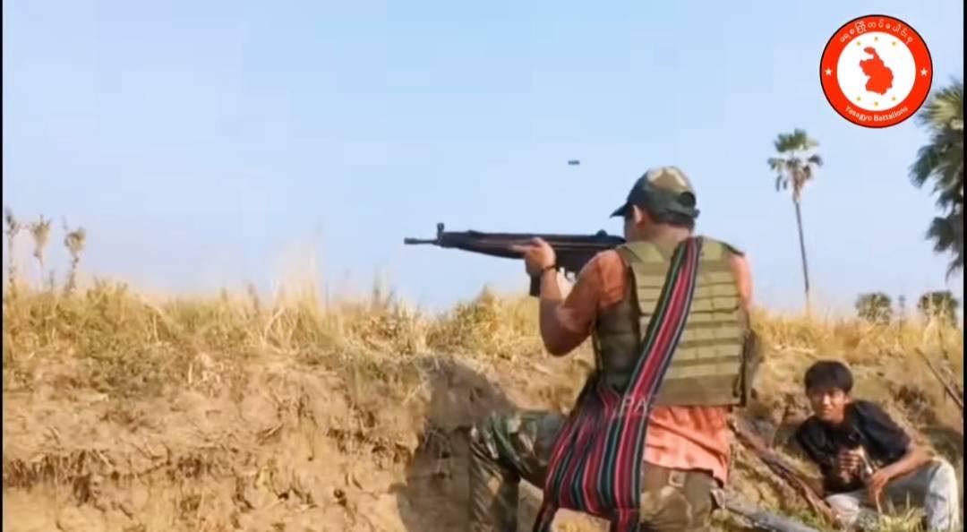 ရေစကြိုတပ်ပေါင်းစု တပ်ဖွဲ့ဝင်များ အကြမ်းဖက်စစ်ကြောင်းကို ခုခံနေစဥ် (ဓာတ်ပုံ ရေစကြိုတပ်ပေါင်းစု)