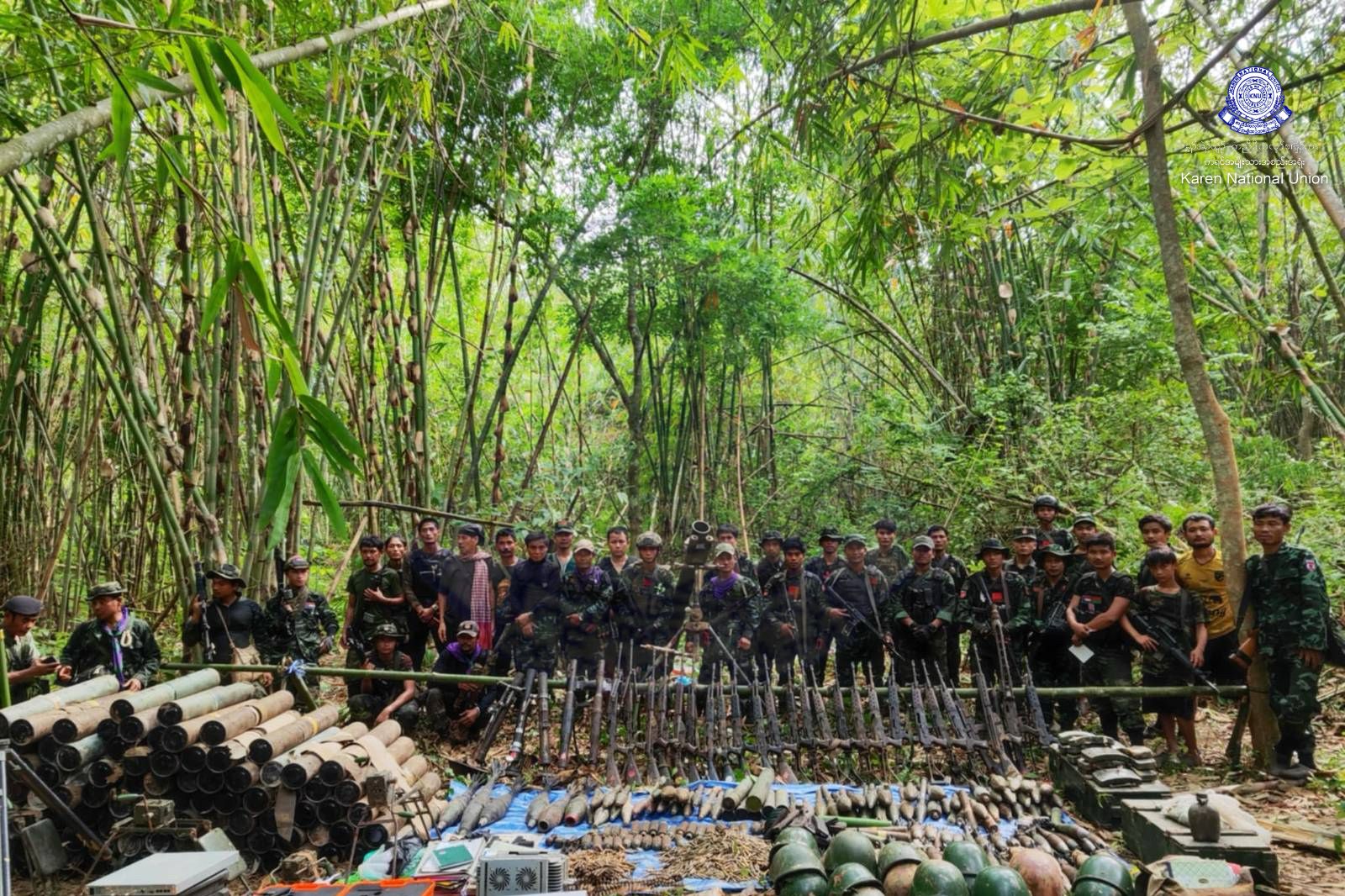 ထီးထဗျူဟာစခန်းနဲ့ သိမ်းပိုက်ရရှိထားတဲ့ လက်နက်တွေနဲ့အတူ တွေ့ရတဲ့ K.N.L.A နဲ့ K.N.D.O ဦးဆောင်တဲ့ တော်လှန်ရေး ပူးပေါင်းတပ်များ (ဓာတ်ပုံ KNU)