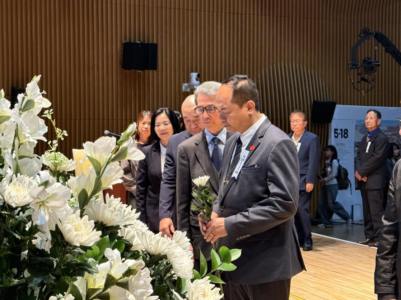 တောင်ကိုရီးယားနိုင်ငံ၊ ဆိုးလ်မြို့တော်ခန်းမမှာ ကျင်းပတဲ့ 5.18 ဂွမ်ဂျူး ဒီမိုကရေစီတော်လှန်ရေး ၄၅ နှစ်မြောက် အောက်မေ့ဘွယ်အခမ်းအနားကို အမျိုးသားညီညွတ်ရေးအစိုးရရဲ့ ကိုရီးယားသမ္မတနိုင်ငံဆိုင်ရာ မြန်မာကိုယ်စားလှယ် ဦးရန်နိုင်ထွန်း၊ NUG Korea ကိုယ်စားလှယ်ရုံး အထောက်အကူပြုအဖွဲ့ဝင်၊ စစ်အာဏာသိမ်းမှုဆန့်ကျင်ရေးကော်မတီ ပူးတွဲဥက္ကဋ္ဌ ဦးတင်ဌေးအောင်နဲ့ မြန်မာ့နွေဦးတော်လှန်ရေးမှာ တက်ကြွစွာပါဝင်ဆောင်ရွက်ကြတဲ့ မြန်မာရဲဘော်တွေ တက်ရောက်ခဲ့ကြတယ်လို့ သိရပါတယ်။