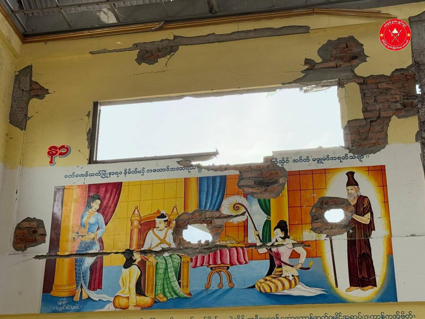 စစ်ကောင်စီရဲ့ တိုက်ခိုက်မှုကြောင့် ထိခိုက်ပျက်စီးမှုများကို တွေ့ရစဉ် (ဓာတ်ပုံ MLA)