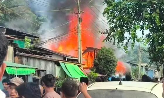 Read More 1 minute read NNews ဖားကန့်တွင် လက်ဖက်ရည်ဆိုင် မီးလောင်၊ ၃ လသားအရွယ် ကလေးငယ် မီးထဲပါသွားOctober 16, 2025 ကချင်ပြည်နယ်၊ ဖားကန့်မြို့မှာ လက်ဖက်ရည်ဆိုင်တစ်ဆိုင် မီးလောင်မှုဖြစ်ပွားပြီး ၃ လသားအရွယ် ကလေးငယ် မီးထဲပါသွားတယ်လို့ ဖားကန့်နယ်ခံဆီက သိရပါတယ်။