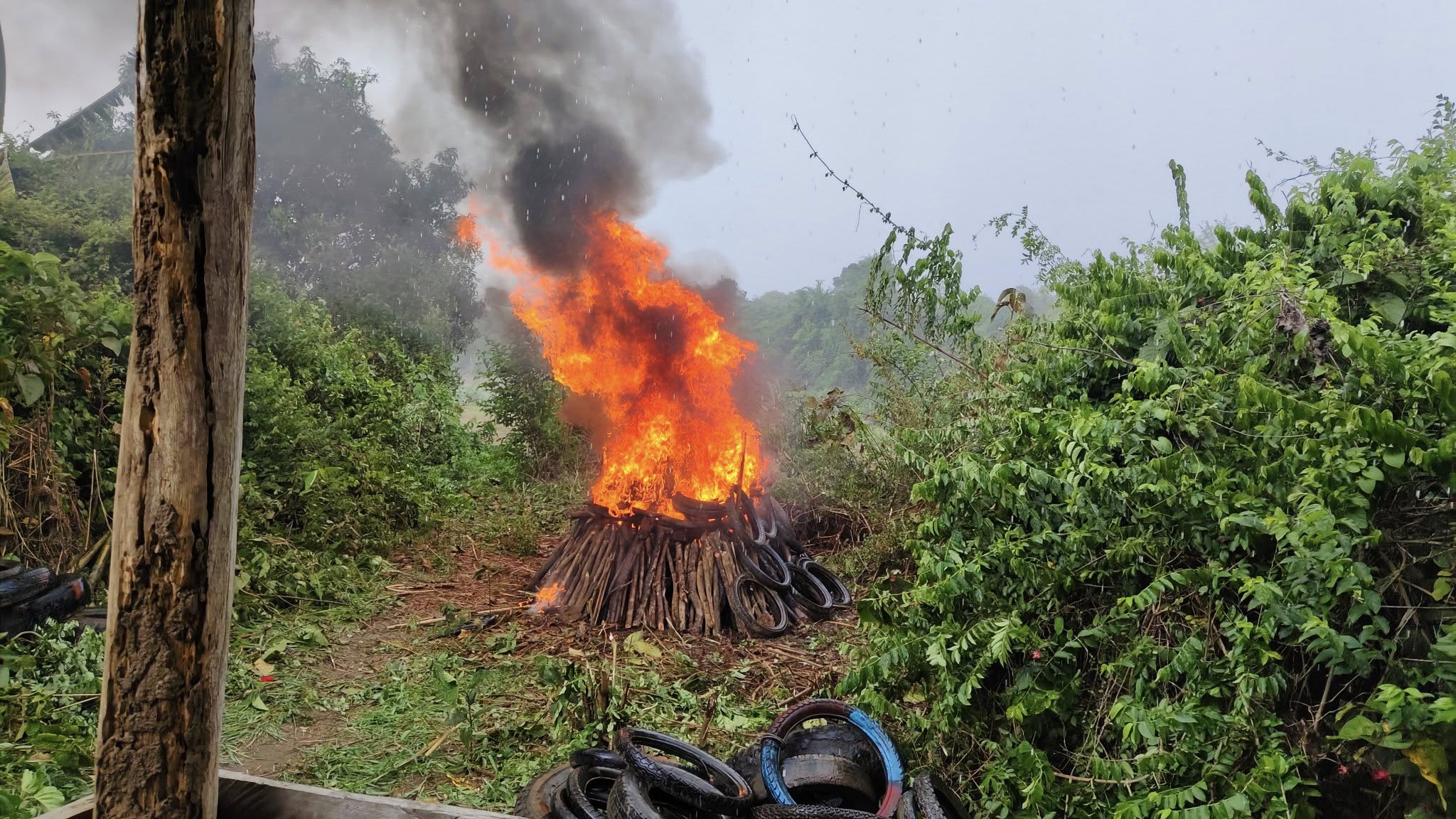 “၂၃ ရက်နေ့ညက ဒီကောင်တွေ ကျွဲခြံ စာသင်ကျောင်းထဲကနေ စစ်ကြောင်းထိုးဖို့ပြူတစ်ပြူတစ်နဲ့ လုပ်တယ်ပေါ့။ အဲ့ဒါ ညဘက်ကြီးစစ်ကြောင်းထိုးမယ်ဆိုရင် အရပ်သားတွေ တိမ်းရရှောင်ရနဲ့ ဒုက္ခများမှာစိုးလို့ ညတွင်းချင်း ပြောက်ကျား၂ ခါ ပစ်ပြီး ထိန်းခဲ့တာပါ။ ၂၅ ရက်နေ့ကလည်း စစ်ကြောင်းပျောက်နေတယ်ထင်တာ သူတို့က အရပ်သားတွေရှိရာ တည့်တည့်ထိုးလာတော့ ကျနော်တို့နဲ့ အနီးကပ်ထိတွေ့မှုဖြစ်ခဲ့တာပါ။” လို့ United States Of Burma Army – USBA (မကွေးတိုင်းပကဖ အထူးလှုပ်ရှားတပ်) တာဝန်ရှိသူ ကိုဗဟိန်းက မောင်းကို ပြောပါတယ်။
