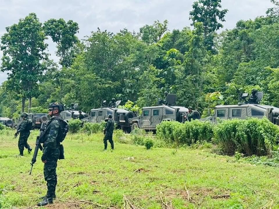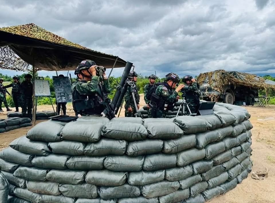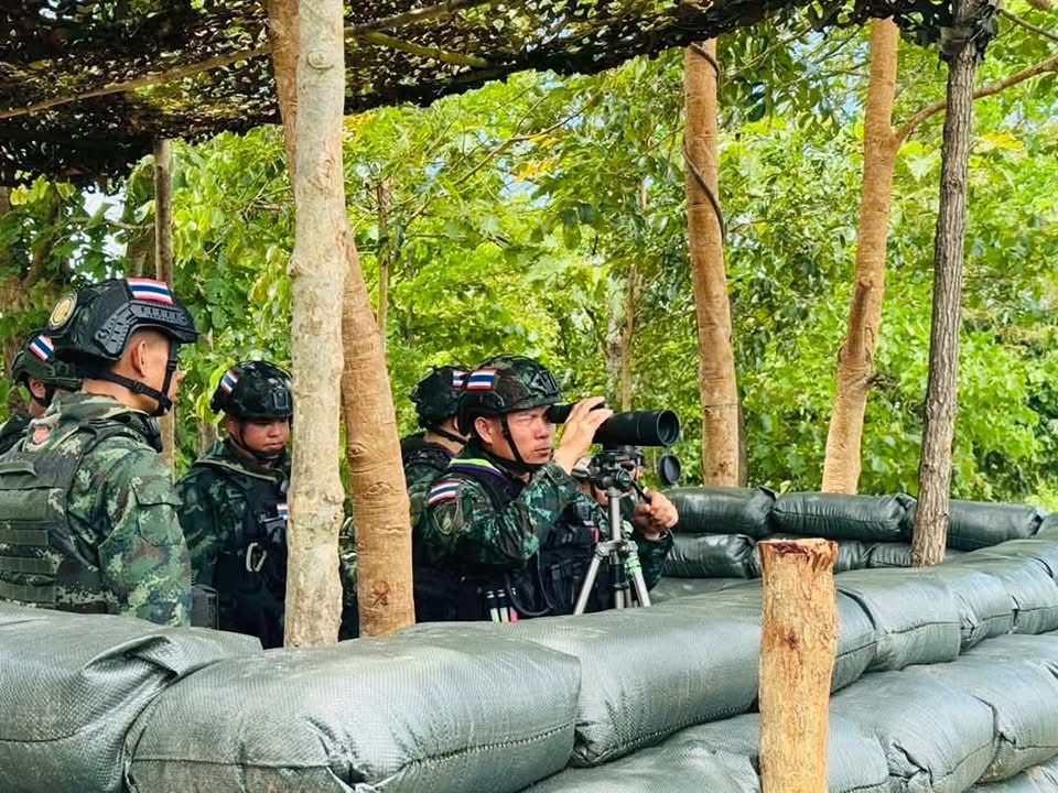 တိုက်ပွဲဖြစ်ပွါးရာနေရာနှင့် အသင့်အနေအထားဖြင့် စောင့်ကြည့်နေသည့် ထိုင်းစစ်တပ် (ဓာတ်ပုံ လူမှုကွန်ရက်)