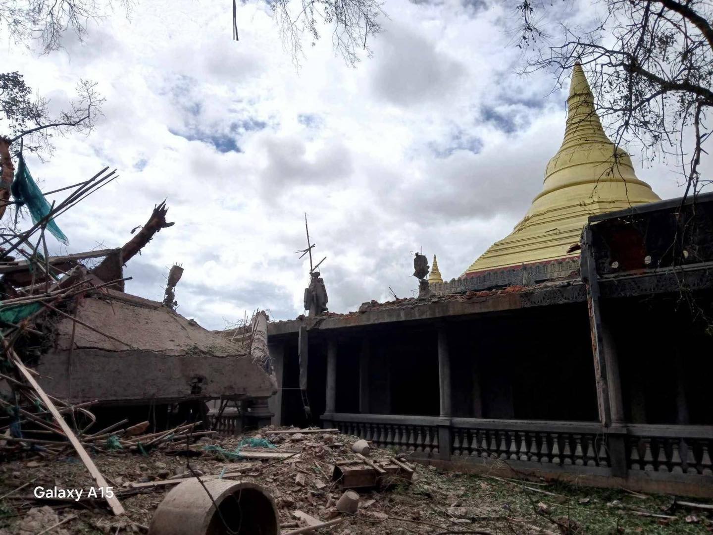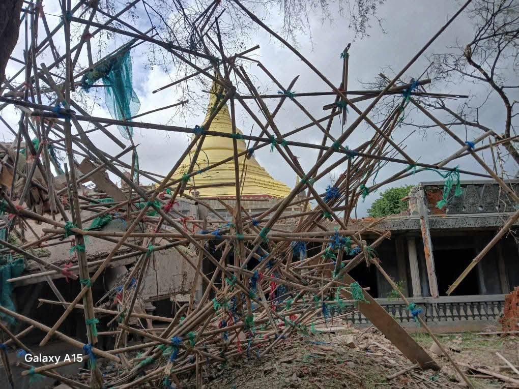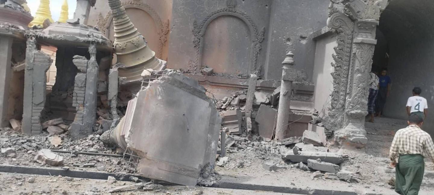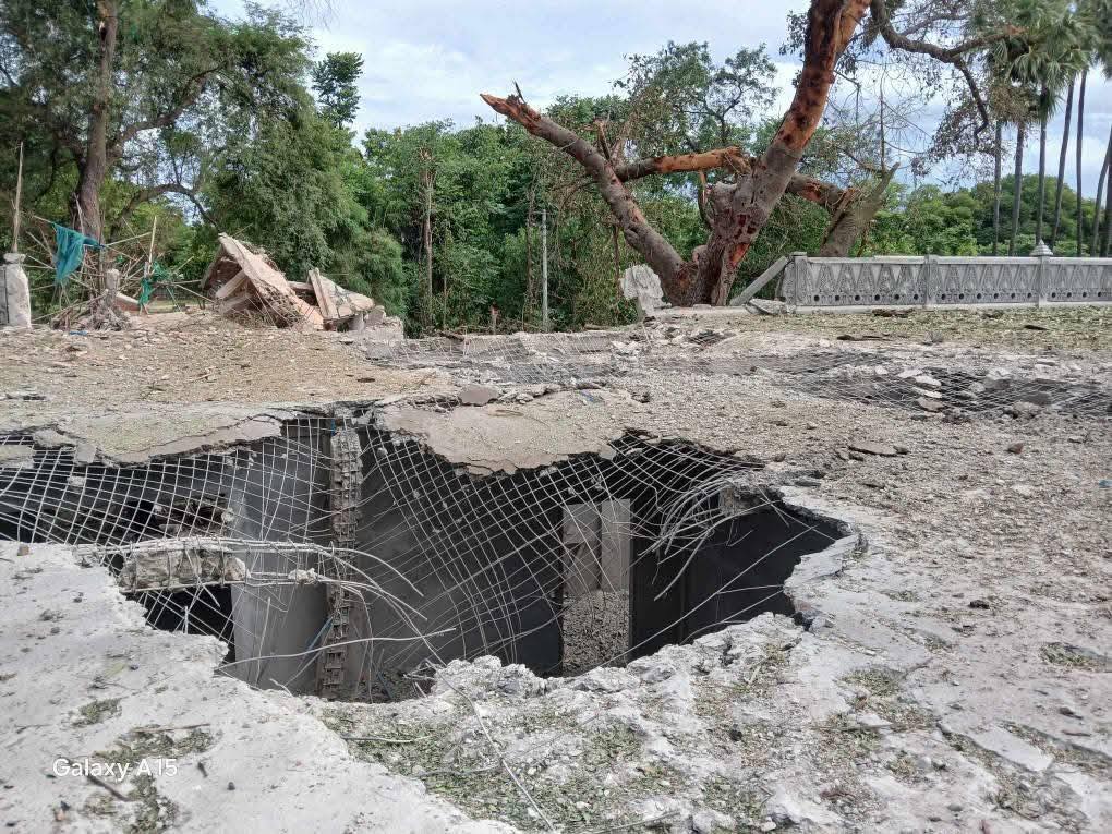 အကြမ်းဖက်စစ်တပ် လေကြောင်းတိုက်ခိုက်ခဲ့သည့် ဇီးတောရွာဘုန်းကြီးကျောင်း မြင်ကွင်း (ဓာတ်ပုံ We Love Myaing)
