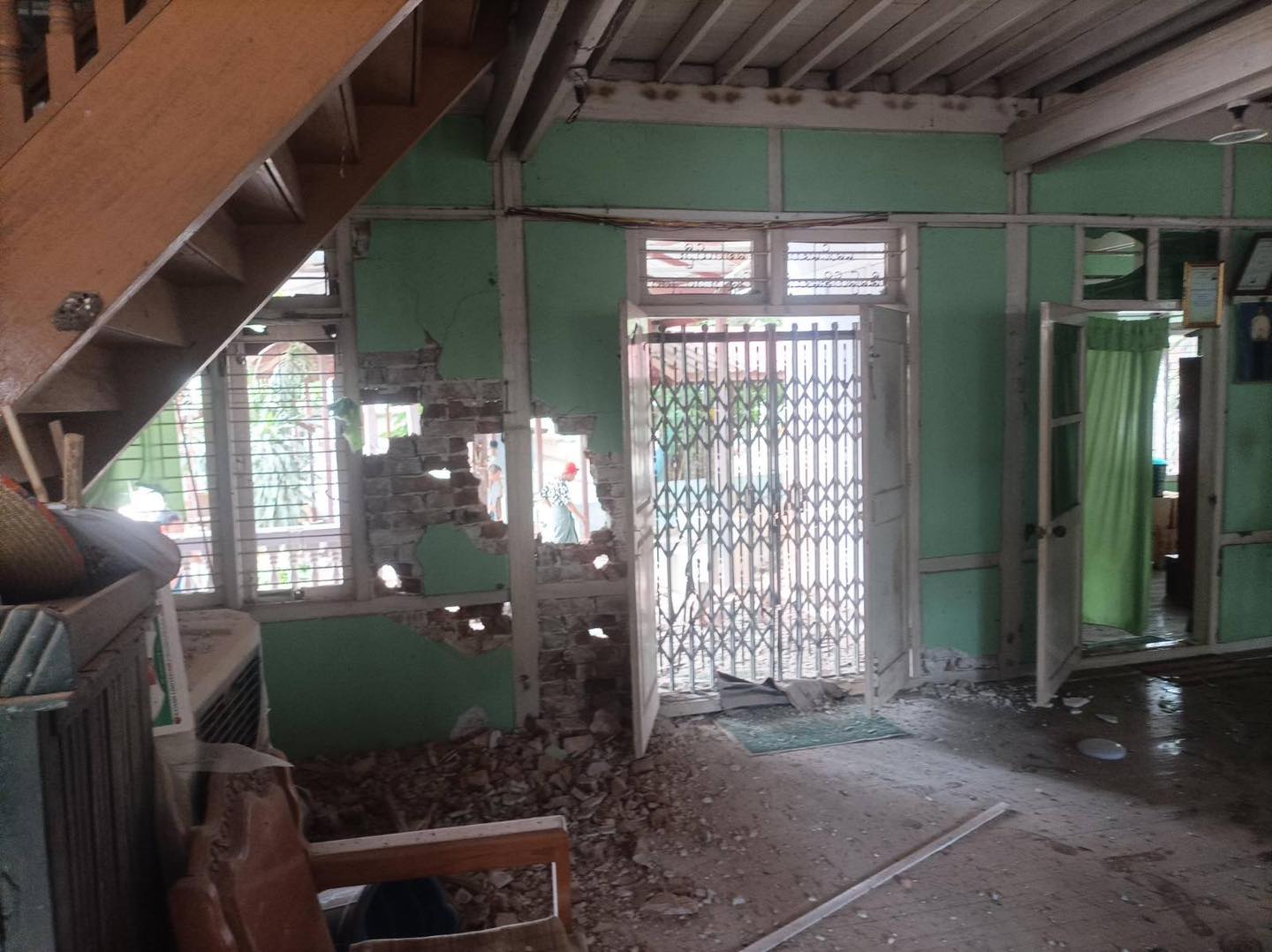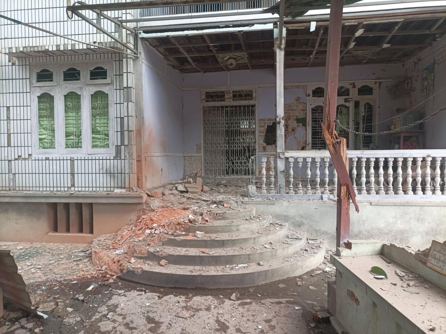 စစ်ကောင်စီ၏ လက်နက်ကြီးကြောင့် ထိခိုက်ဒဏ်ရာရခဲ့သည့် ကလေးငယ်နှင့် ပြိုကျပျက်စီးခဲ့သည့် အဆောက်အအုံများ (ဓာတ်ပုံ ဇေယျာသွေး ပကဖ)