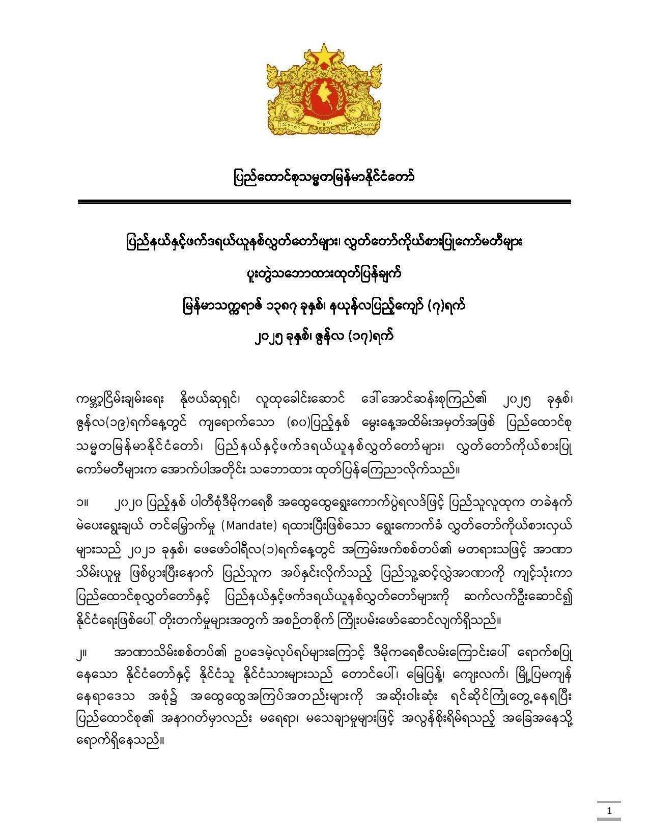 ကမ္ဘာ့ငြိမ်းချမ်းရေး နိုဗယ်ဆုရှင်ဖြစ်တဲ့ လူထုခေါင်းဆောင် ဒေါ်အောင်ဆန်းစုကြည်နဲ့အတူ နိုင်ငံရေးအကျဉ်းသားအားလုံးကို ခြွင်းချက်မရှိ အမြန်ဆုံးလွှတ်ပေးဖို့ တောင်းဆိုကြောင်း ပြည်နယ်နဲ့ ဖက်ဒရယ်ယူနစ်လွှတ်တော်တွေ၊ လွှတ်တော်ကိုယ်စားပြုကော်မတီတွေက ဒီနေ့မှာ ပူးတွဲသဘောထားထုတ်ပြန်လိုက်ပါတယ်။