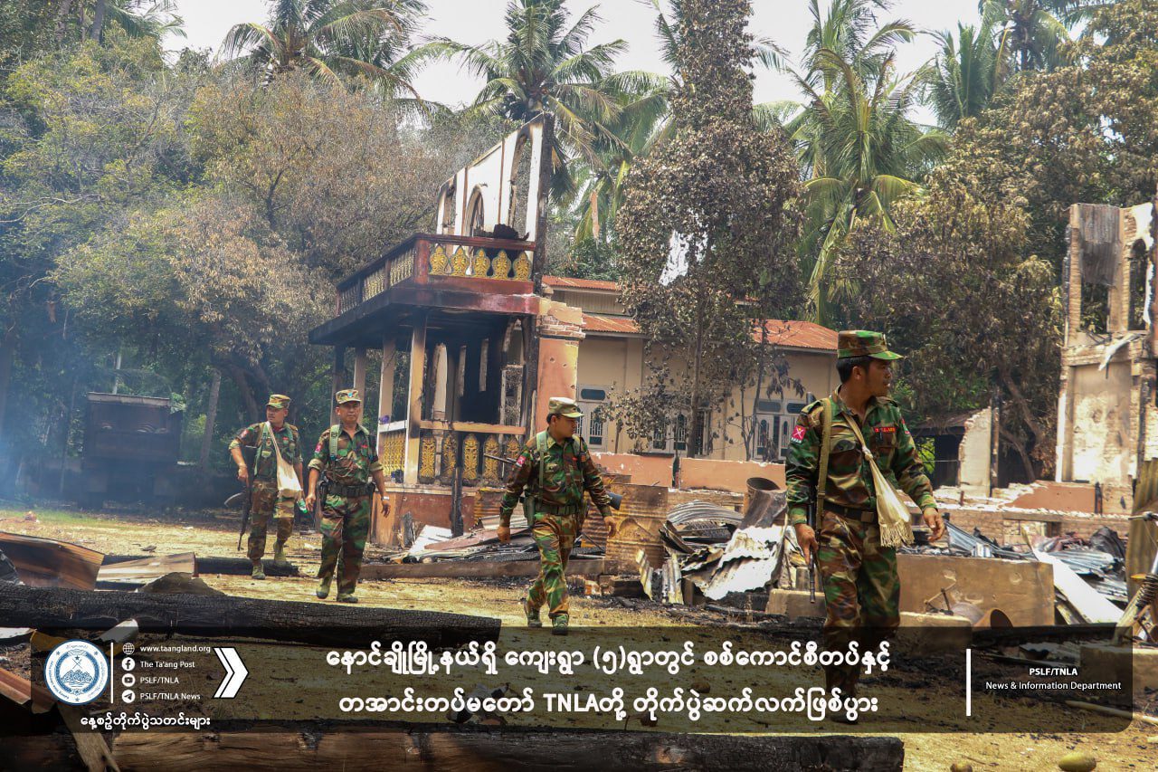ပြီးခဲ့တဲ့ ဇွန်လ (၂၅)ရက်ကလည်း နောင်ချိုမြို့နယ်ရှိ နောင်လင်၊ နောင်အော၊ လုံစံနဲ့ နောင်ဖာကျေးရွာတို့မှာ တိုက်ပွဲဖြစ်ပွားခဲ့ရာ စစ်ကောင်စီတပ်က ဒရုန်းနဲ့ ဗုံး (၂၈)လုံး၊ လက်နက်ကြီး (၆၈)လုံး ပစ်ကူတိုက်ခိုက်ခဲ့တယ်လို့ TNLA က ထုတ်ပြန်ထားပါတယ်။