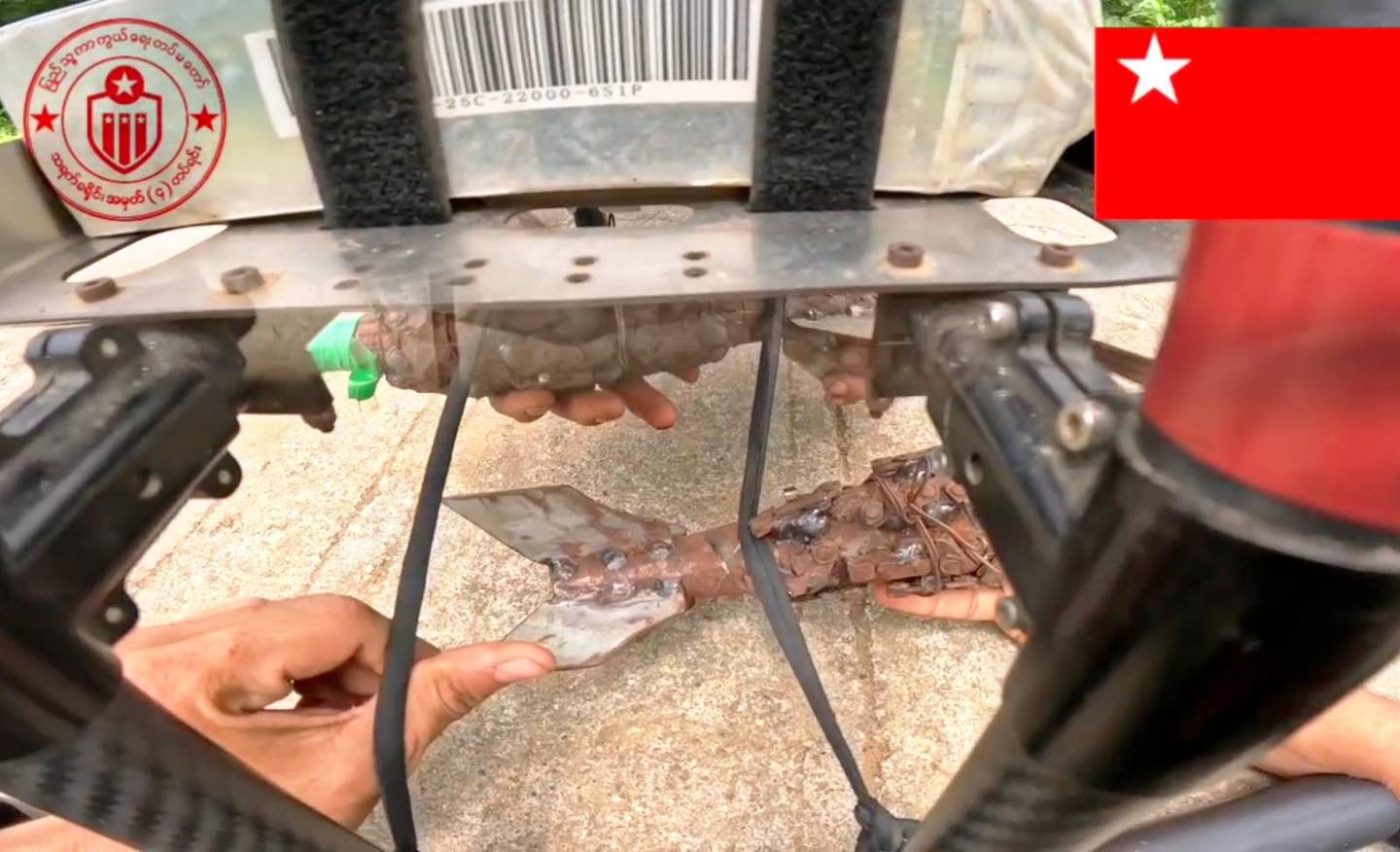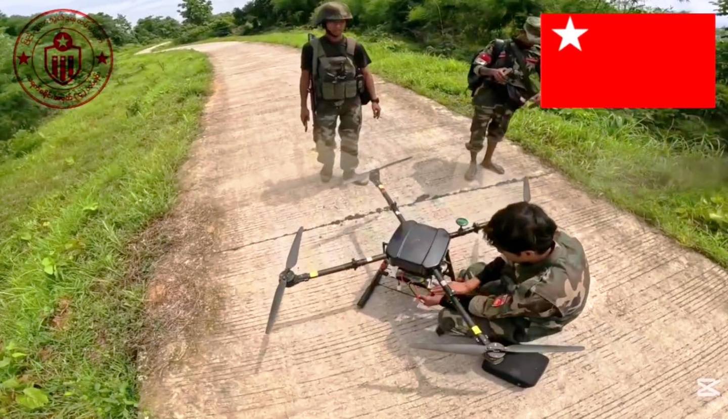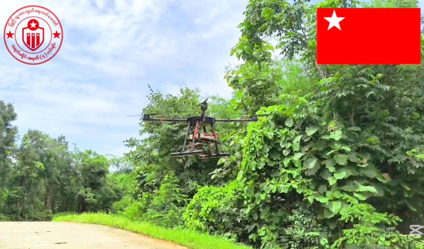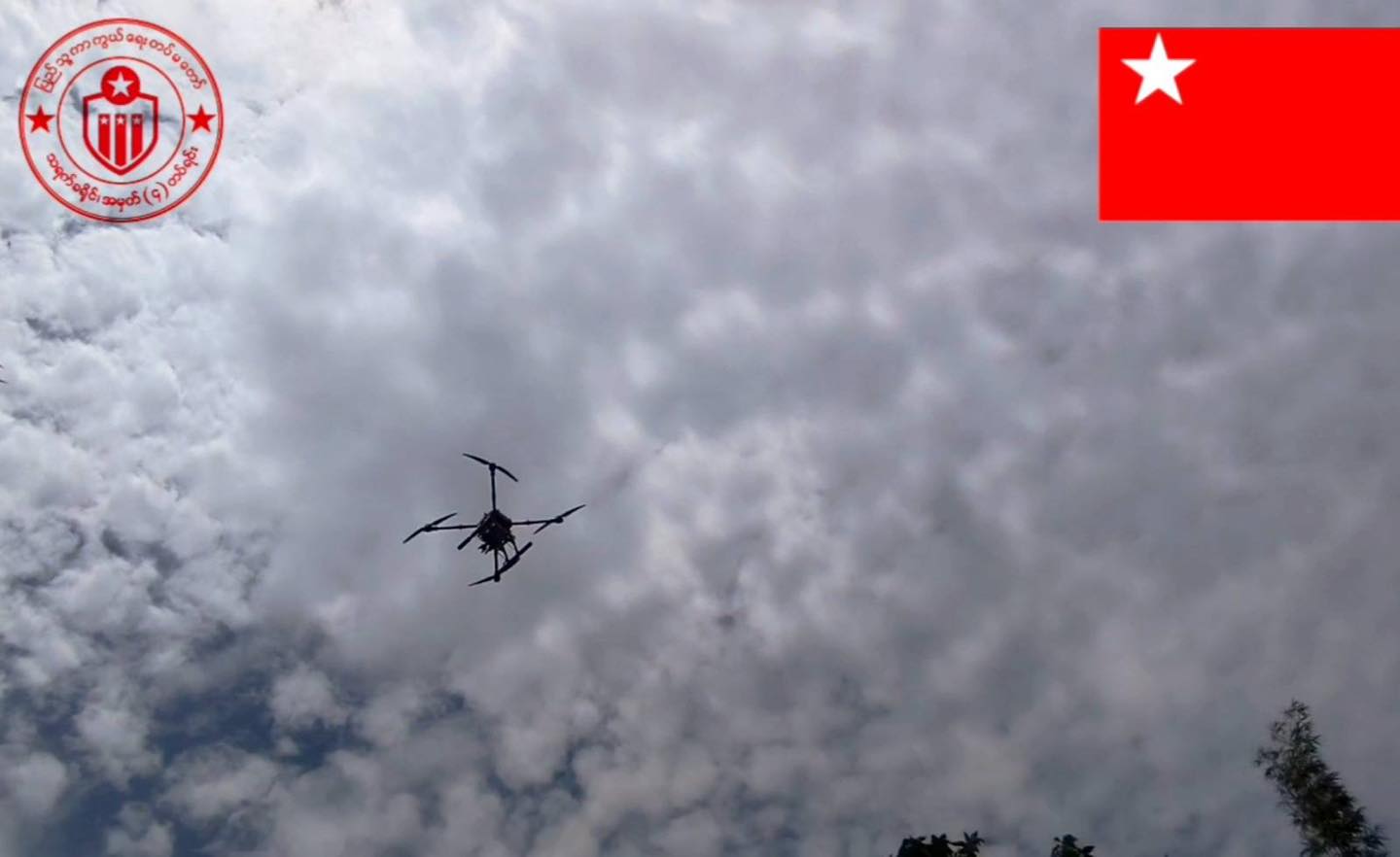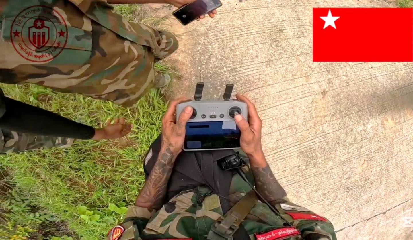 သရက်ခရိုင် အမှတ် ၄ တပ်ရင်းနှင့် မင်းတုန်းမြို့နယ် ပြည်သူ့ကာကွယ်ရေးတပ်ဖွဲ့ဝင်များ ဒရုန်းစစ်ဆင်ရေး လုပ်ဆောင်နေစဥ် (ဓာတ်ပုံ အမှတ် ၁ စစ်ဒေသ ပြည်သူ့ကာကွယ်ရေးတပ်မတော် သရက်ခရိုင် အမှတ် – ၄ တပ်ရင်း)