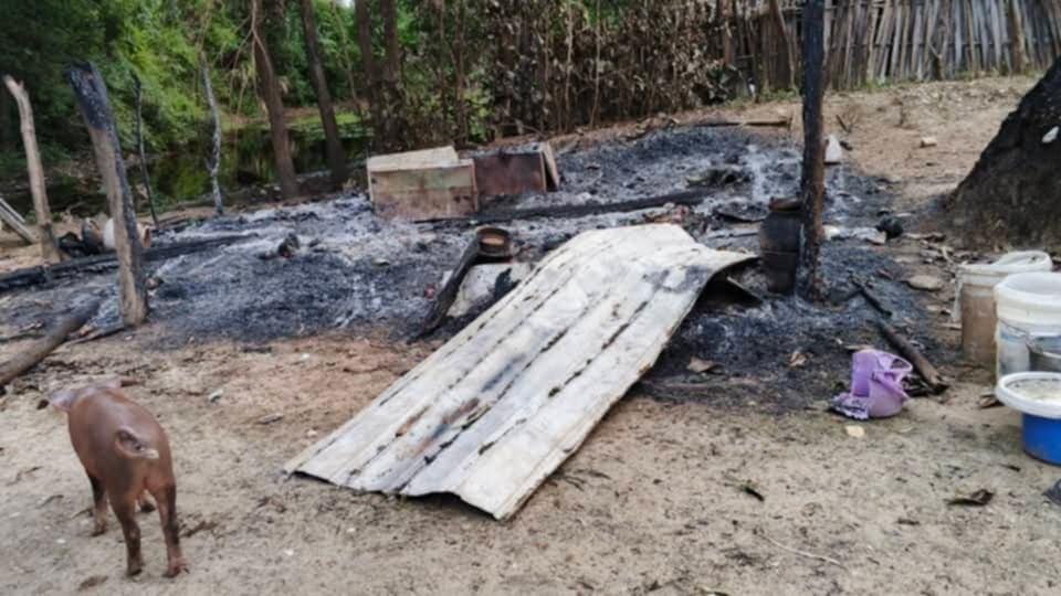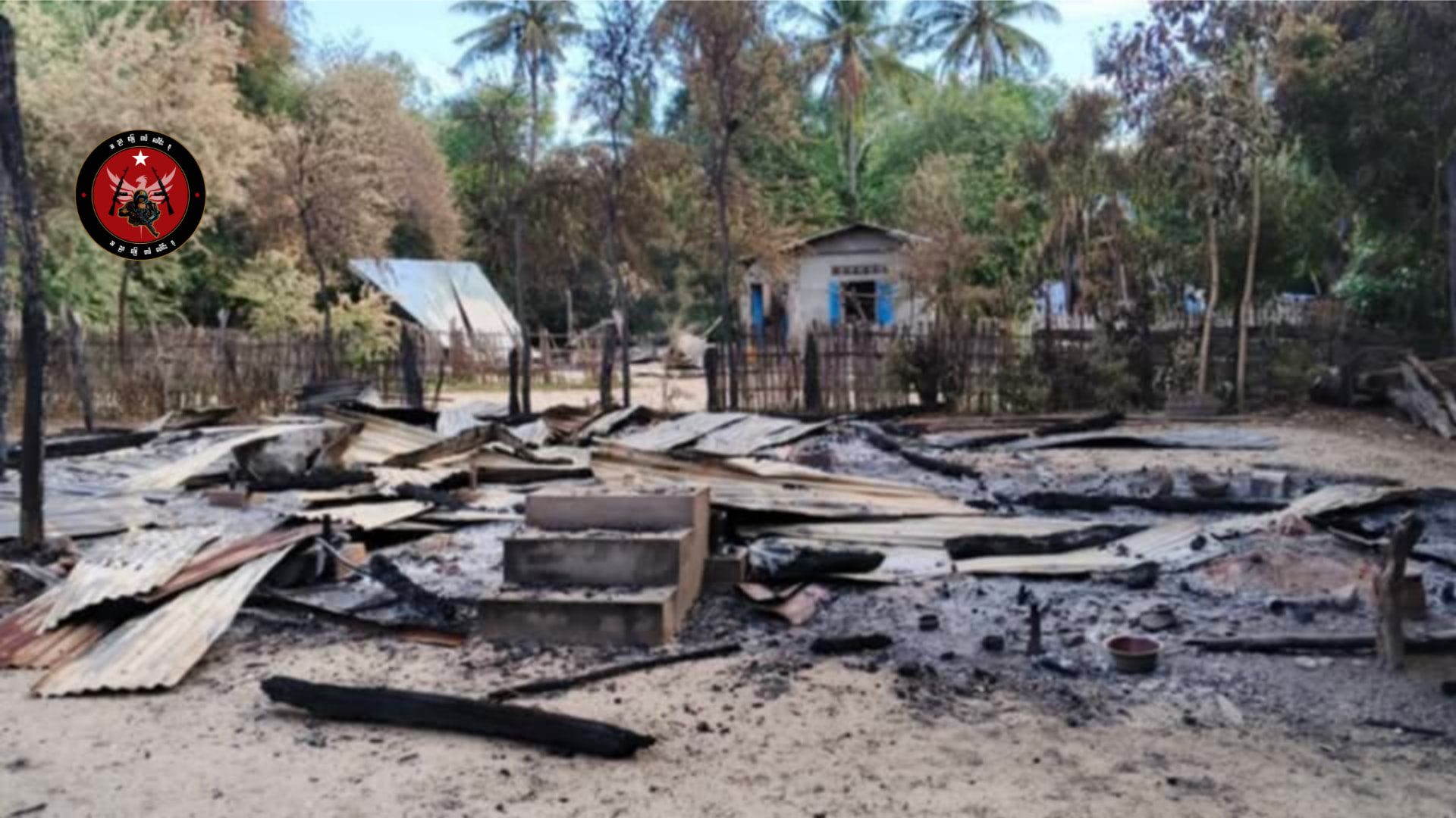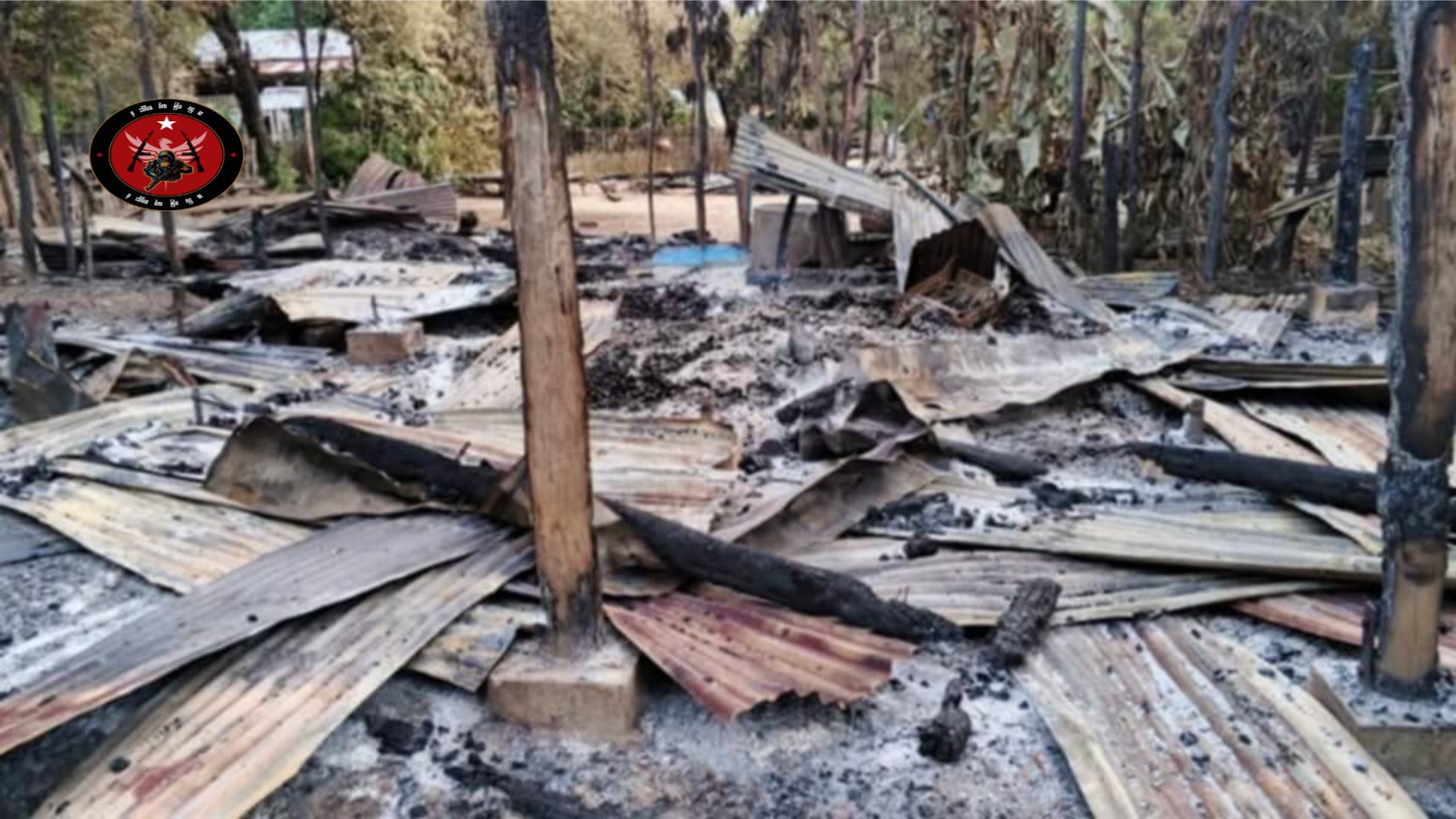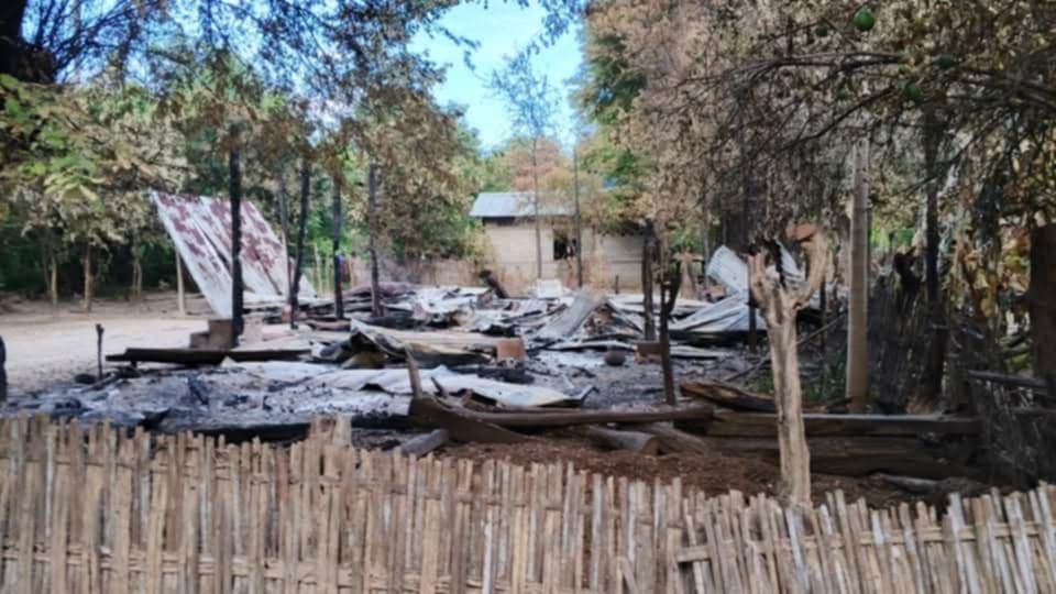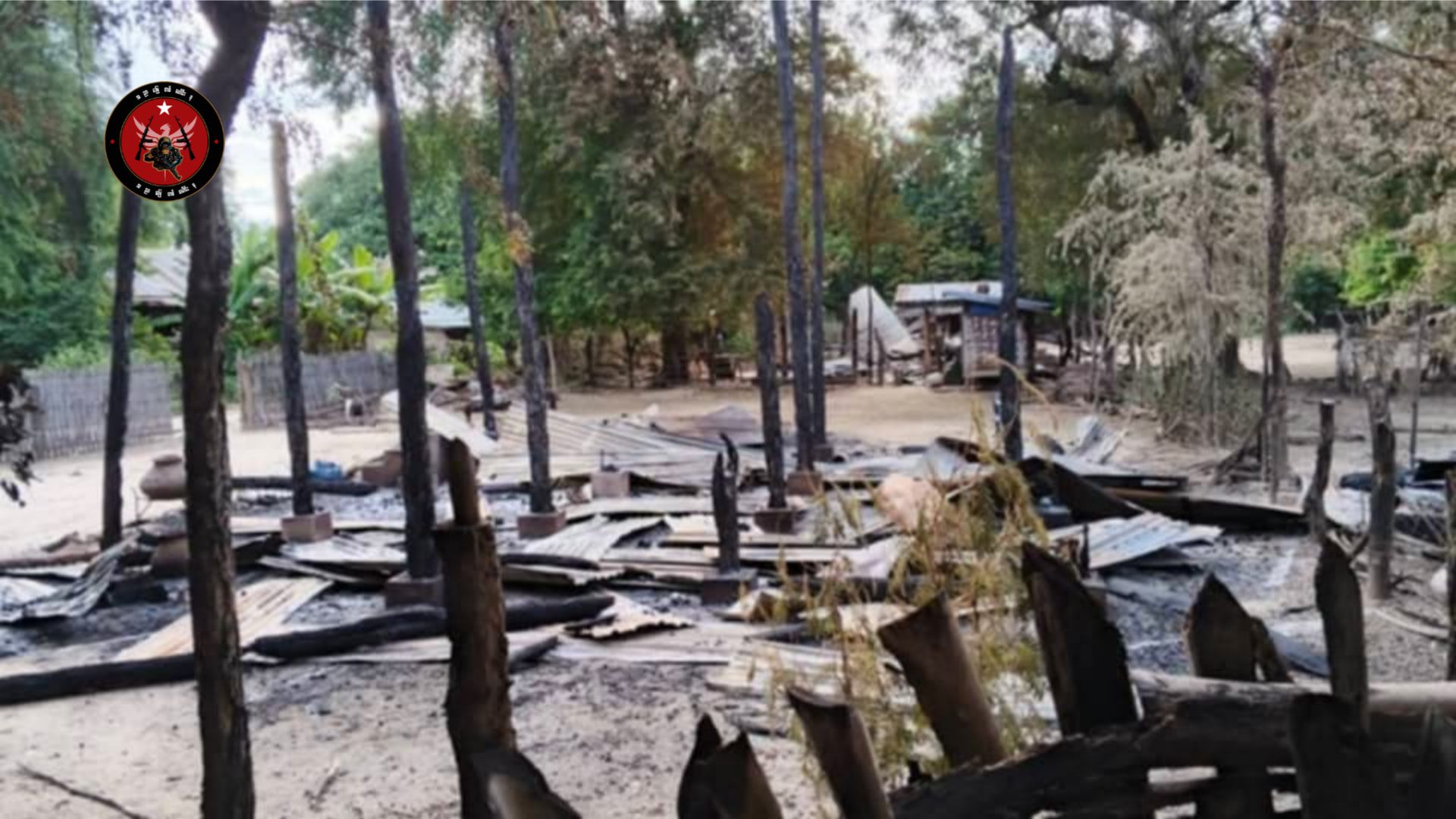 သြဂုတ်လ ၂၀ ရက်နေ့တွင် စစ်အုပ်စုမီးရှို့သွားသည့် ရေယာဥ်ကျေးရွာမြင်ကွင်း (ဓာတ်ပုံ အညာမြေတပ်ပေါင်းစု)
