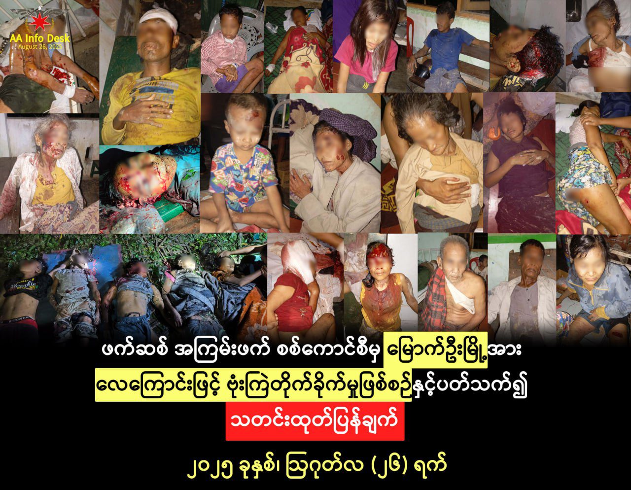 အကြမ်းဖက် စစ်ကော်မရှင်တပ်ဟာ လူအများအိပ်မောကျနေချိန်ကို အခွင့်ကောင်းယူပြီး အပြစ်မဲ့ ပြည်သူတွေ ထိခိုက်သေဆုံးစေဖို့ တမင် ရည်ရွယ်ချက်ရှိရှိ ဗုံးကြဲတိုက်ခိုက်မှုတွေ လုပ်ဆောင်နေတယ်လို့ အာရက္ခတပ်တော် AA က ထုတ်ပြန်ပါတယ်။