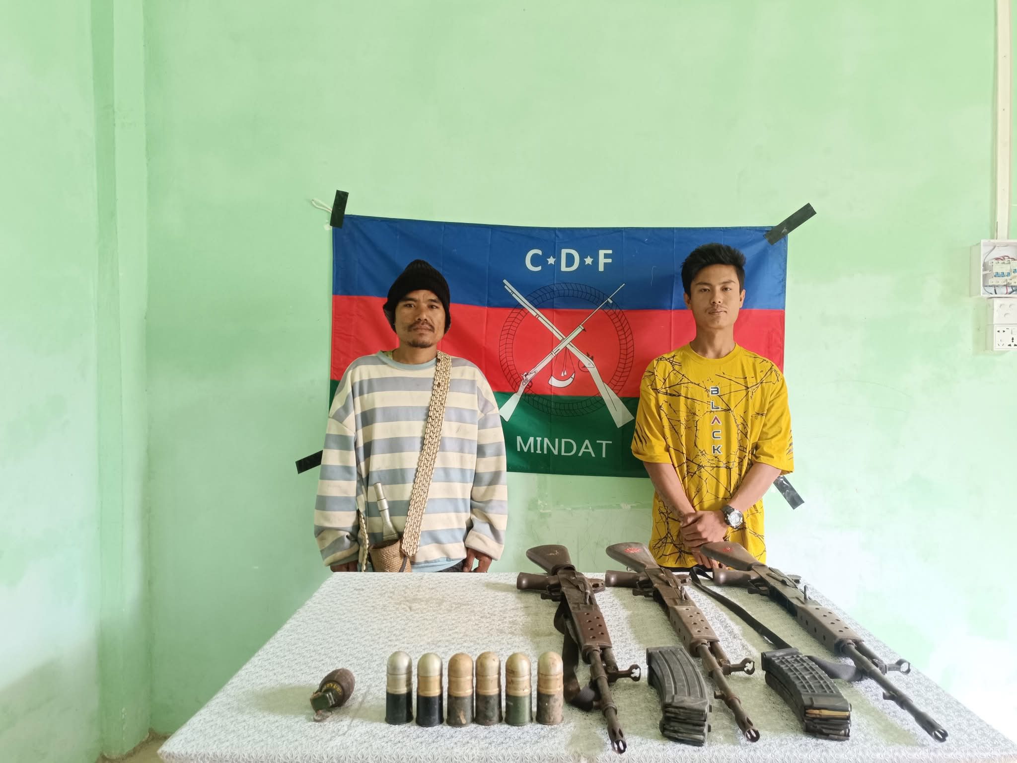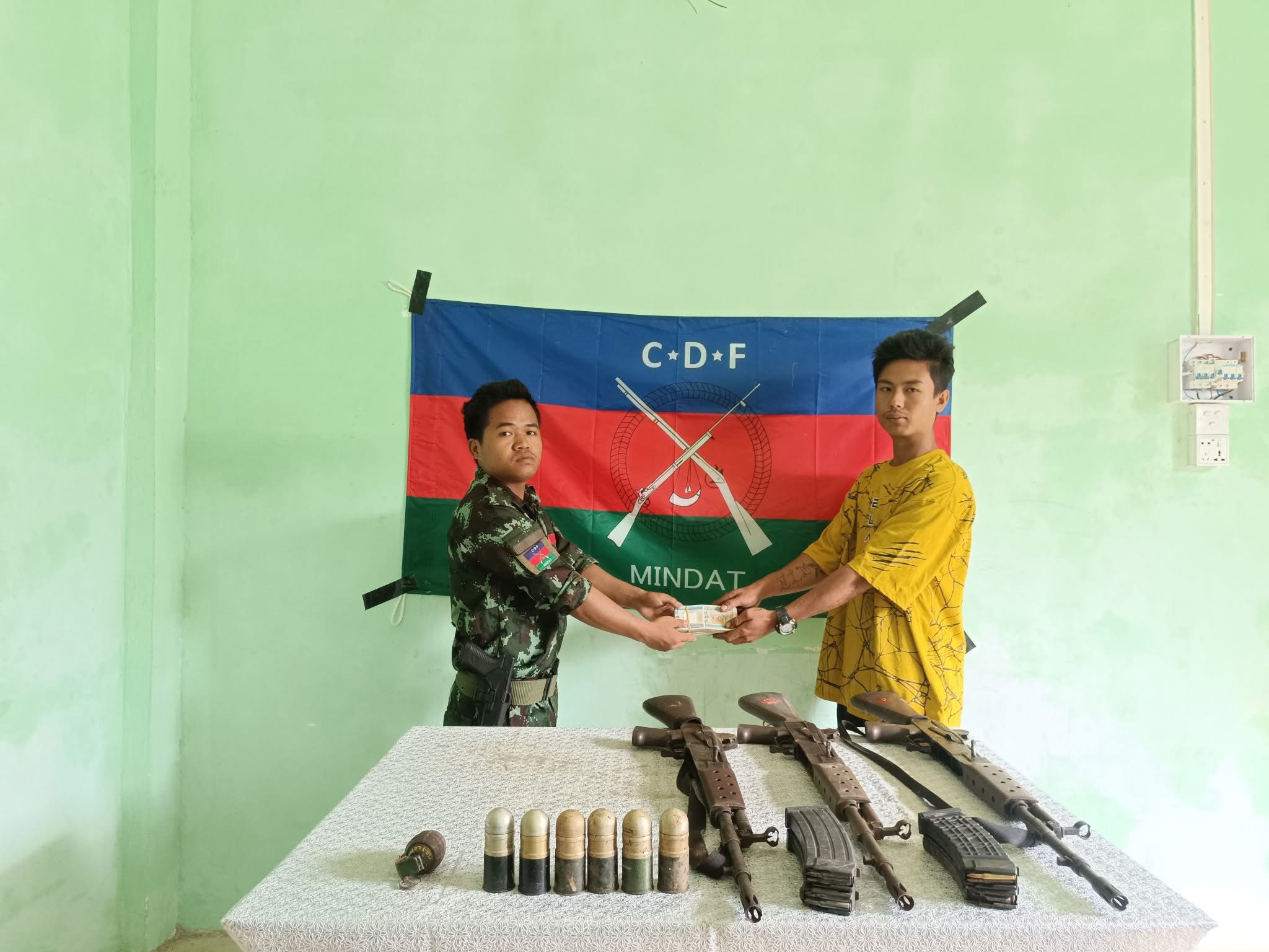 မင်းတပ်မြို့သိမ်းတိုက်ပွဲကနေ ကစဉ့်ကလျားဆုတ်ခွာထွက်ပြေးသွားတဲ့ အကြမ်းဖက်စစ်သားတွေ မြေဖို့ဝှက်ထားခဲ့တဲ့ MA 1 သေနတ် (‌၃) လက်၊ ၄၀ မမ ဗုံးသီး(၆) လုံးနဲ့ အခြားလက်နက်ဆက်စပ်ပစ္စည်းတွေ ကို CDF-Mindat ရဲ့ စစ်ဦးစီးချုပ်ရုံးမှာ လာရောက်အပ်နှံခဲ့တယ်လို့ ဆိုပါတယ်။