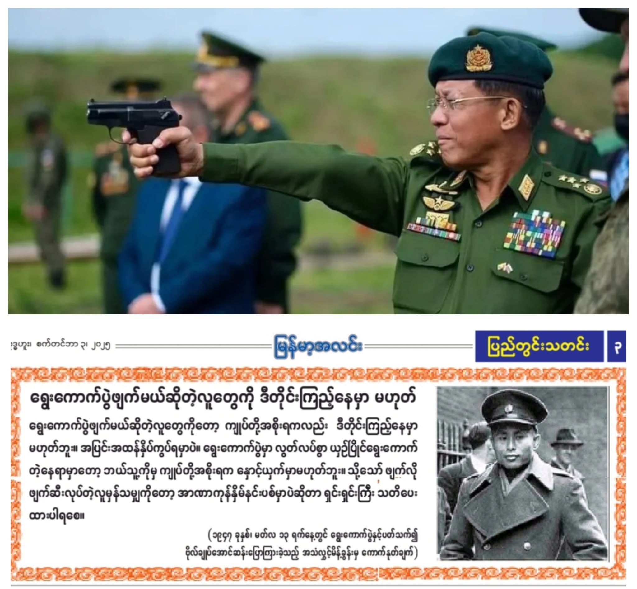 နိုင်ငံတော်အတိုင်ပင်ခံပုဂ္ဂိုလ် ဒေါ်အောင်ဆန်းစုကြည်ကို ဖမ်းဆီးထောင်ချထားတဲ့ အကြမ်းဖက်စစ်အုပ်စုဟာ သူတို့ ထိန်းချုပ်ထားတဲ့ နေ့စဥ်ထုတ်သတင်းစာတွေမှာ ဗိုလ်ချုပ်အောင်ဆန်း ပြောကြားခဲ့တဲ့ ရွေးကောက်ပွဲနဲ့ ပတ်သက်တဲ့ မိန့်ခွန်းကို နေ့စဥ်နဲ့အမျှ ထည့်သွင်းဖော်ပြနေပါတယ်။