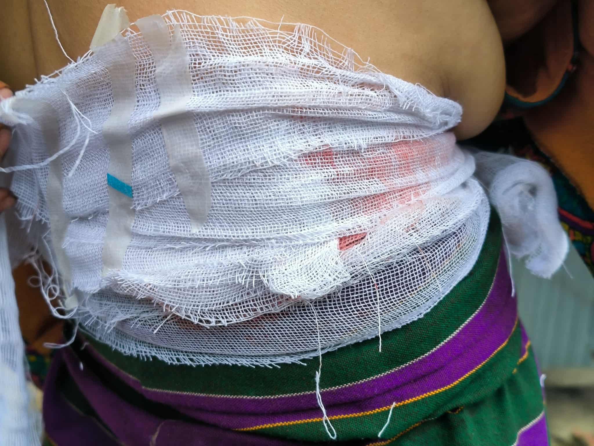 အထက်ပါ တာဝန်ခံကပဲ “ပန်သပြေရွာကိုကျတော့ ဂျက်ဖိုက်တာနဲ့လည်း ဗုံးကြဲပြီး သေနတ်နဲ့လည်း အပေါ်ကနေ ပစ်သွားတာလို့ သိရတယ်။ 0.5 ကျည် ထိတာတွေ တွေ့ရတယ်။ ကြဲတာက ရွာထိပ်မှာ ၃ လုံး၊ ရွာအောက်မှာ ၁လုံးပေါ်နော်။ ထိတဲ့ အမျိုးသမီးက သက်ကြီးပိုင်းဖြစ်နေပြီ၊ အသက် ၆၀ ကျော်ပေါ့နော်။ ခါးအပါ်ဘက် ကျောကုန်းနဲ့ ဝမ်းဗိုက်နေရာ ထိမှန်တာ။ မပြင်းထန်တော့ ရွာမှာပဲ ဆေးကုနေတယ် သိရတယ်” လို့ဆိုပါတယ်။